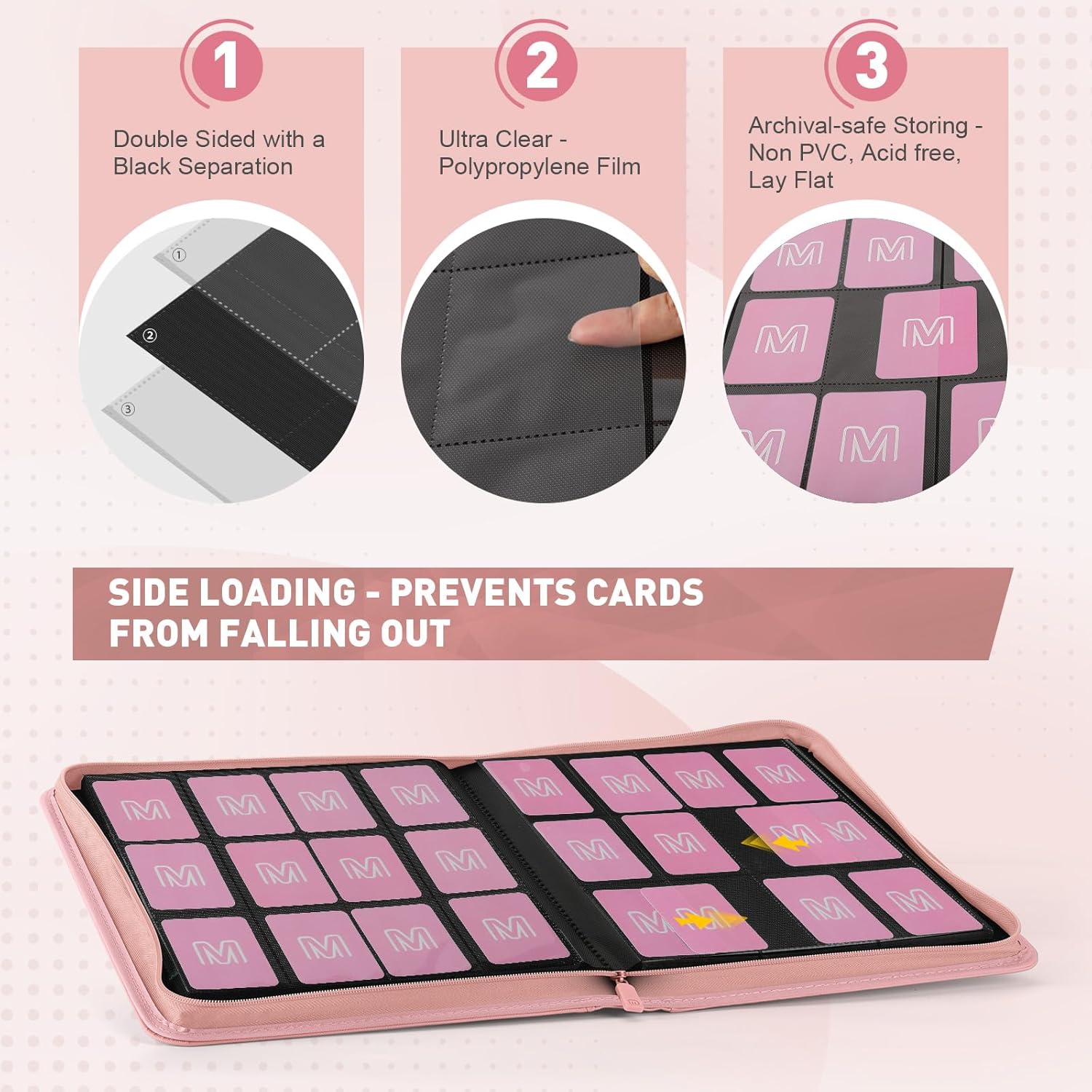 - 【PREMIUM QUALITY MATERIAL】 Card Binder is designed with textured PU leather material finish which is comfortable.this trading card binder is not only stylish but also ensures durability and long-lasting performance.The waterproof and durable card sleeves provide extra protection for your cards, keeping them safe from spills, moisture, and everyday wear and tear.