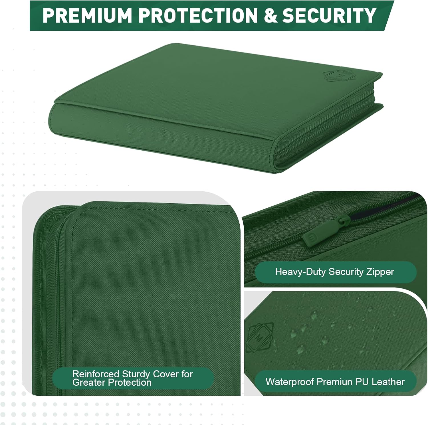 - 【PREMIUM QUALITY MATERIAL】 Card Binder is designed with textured PU leather material finish which is comfortable.this trading card binder is not only stylish but also ensures durability and long-lasting performance.The waterproof and durable card sleeves provide extra protection for your cards, keeping them safe from spills, moisture, and everyday wear and tear.