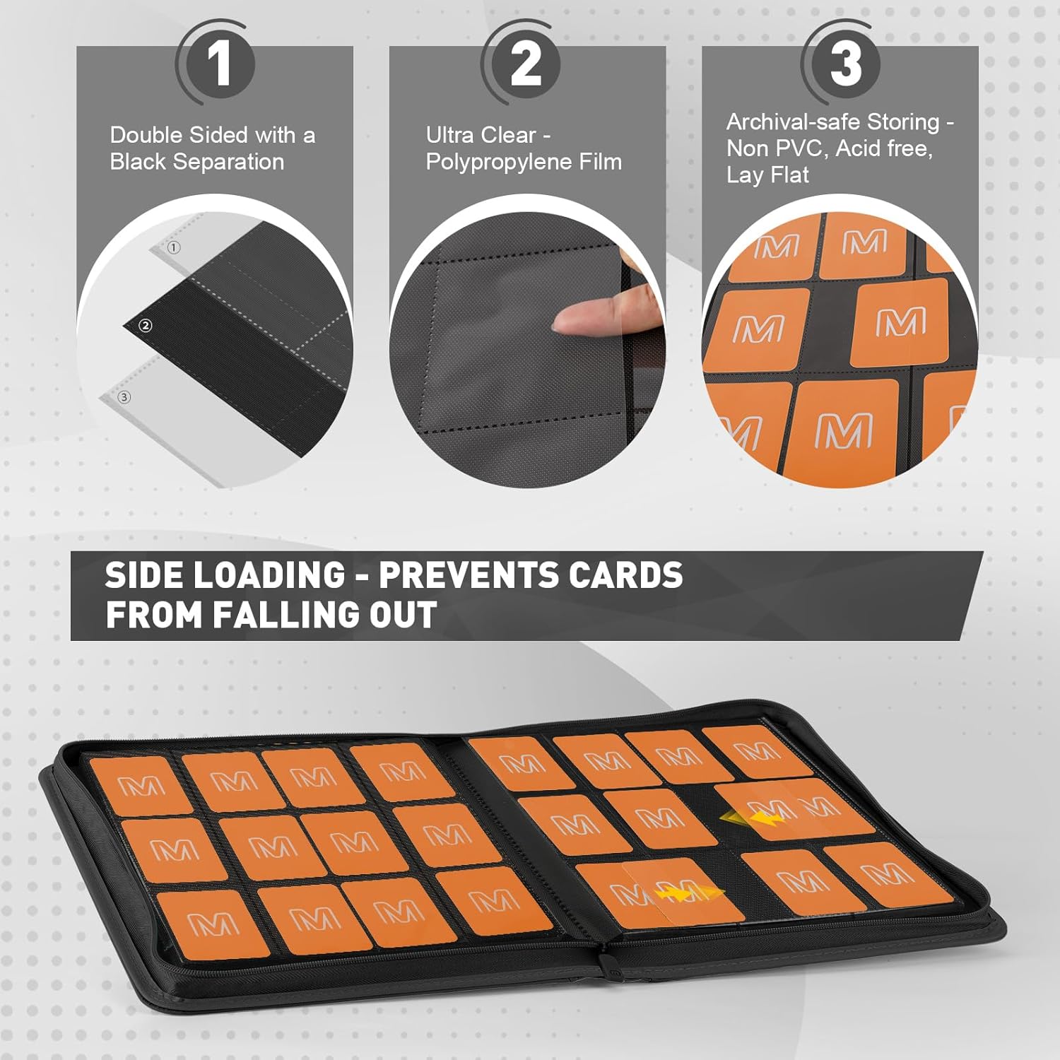 - 【PREMIUM QUALITY MATERIAL】 Card Binder is designed with textured PU leather material finish which is comfortable.this trading card binder is not only stylish but also ensures durability and long-lasting performance.The waterproof and durable card sleeves provide extra protection for your cards, keeping them safe from spills, moisture, and everyday wear and tear.
