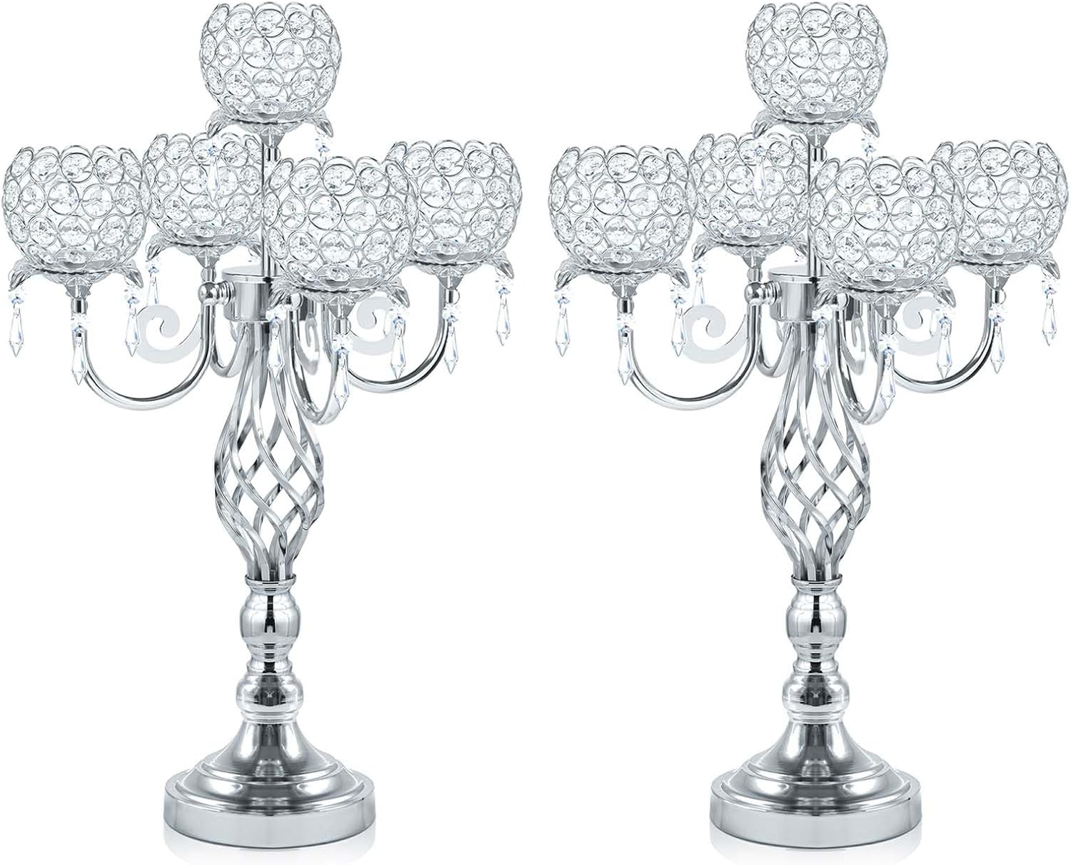 5-Arm Crystal Candelabra Centerpiece 23.2" Tall - Elegant Candle Holder Stand with Crystal Bowl, Chic Table Decor for Weddings, Parties, Anniversary & Home Decoration (2, Silver)