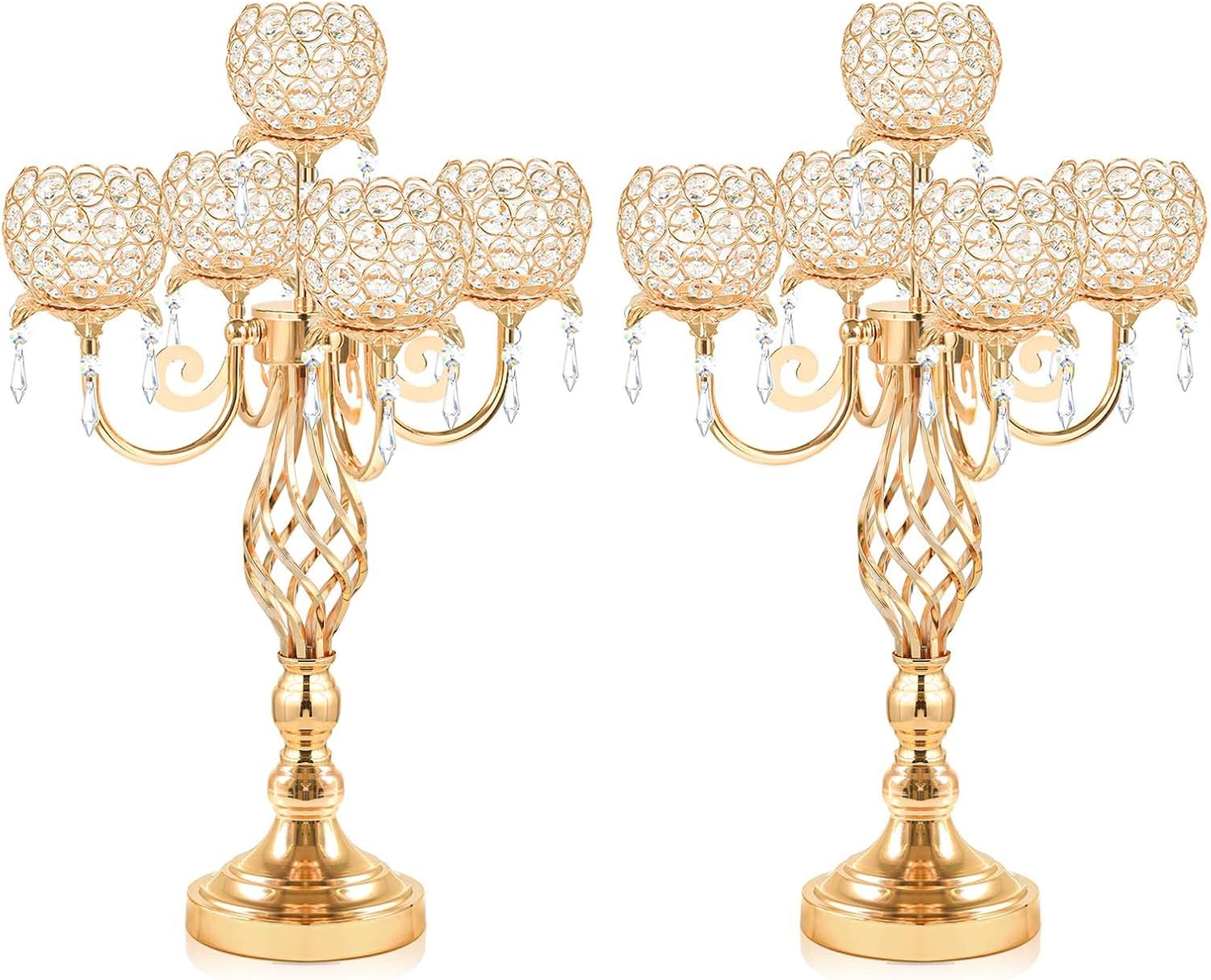 - Elegant and Luxurious Design:This is a piece made of premium gold-tone metal and timeless crystals. The 23.6-inch tall exquisite centerpiece instantly sets the mood for a grand celebration or an intimate gathering.
