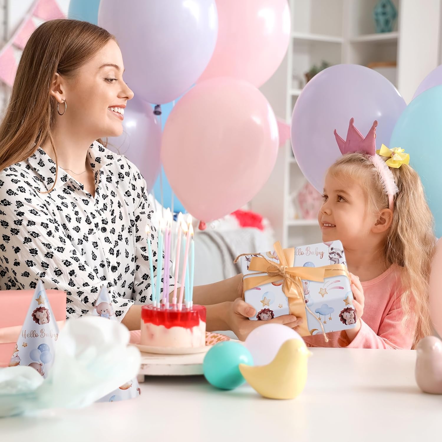 - Baby Shower Design:This wrapping paper with a cute bear, raccoon, fox, hedgehog design, making it perfect for any baby shower celebration or birthday party for boys girls