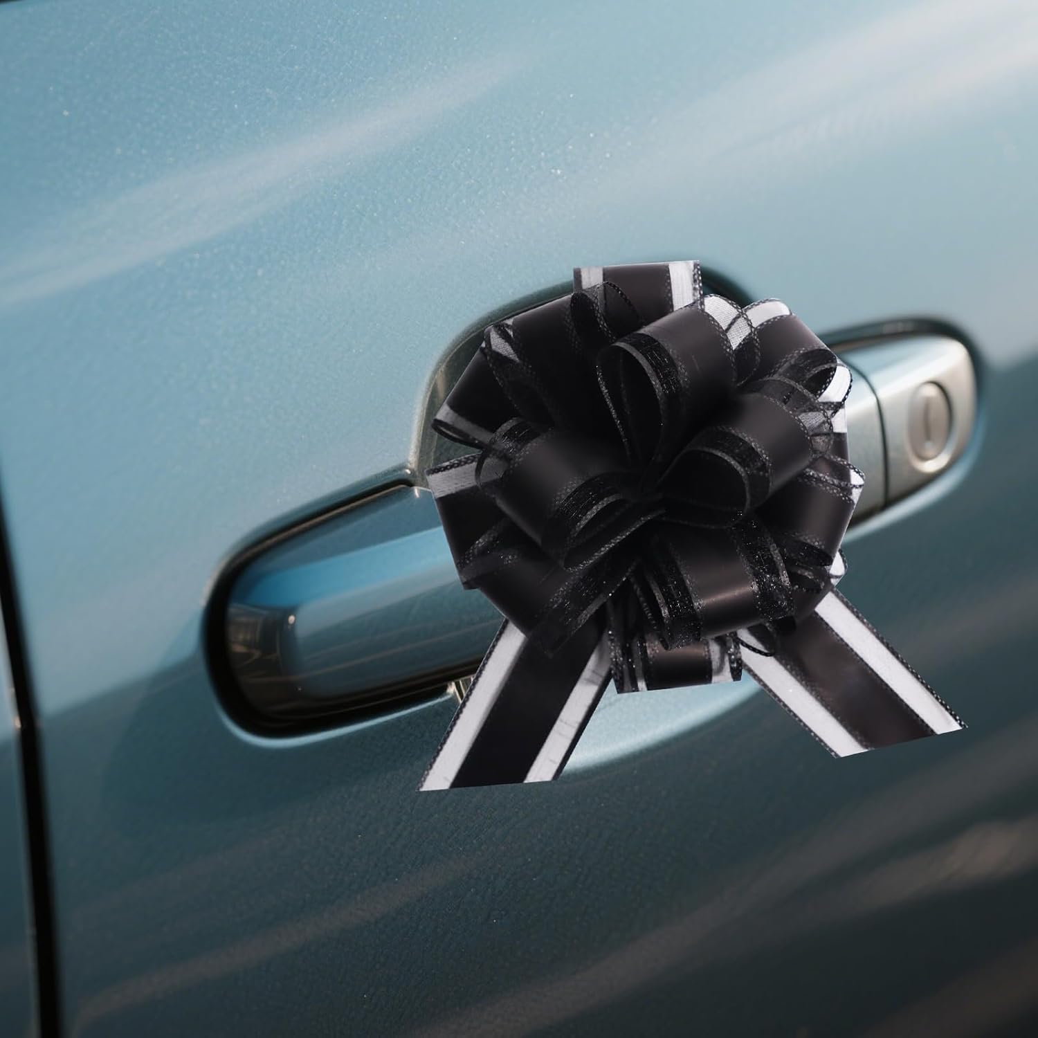 6 Pcs 6 Inch Black Pull Bows, Perfect for Gift Wrapping, Weddings, Party Decorations, Crafts Easy-to-Use Pull Bows for Gifts and Events