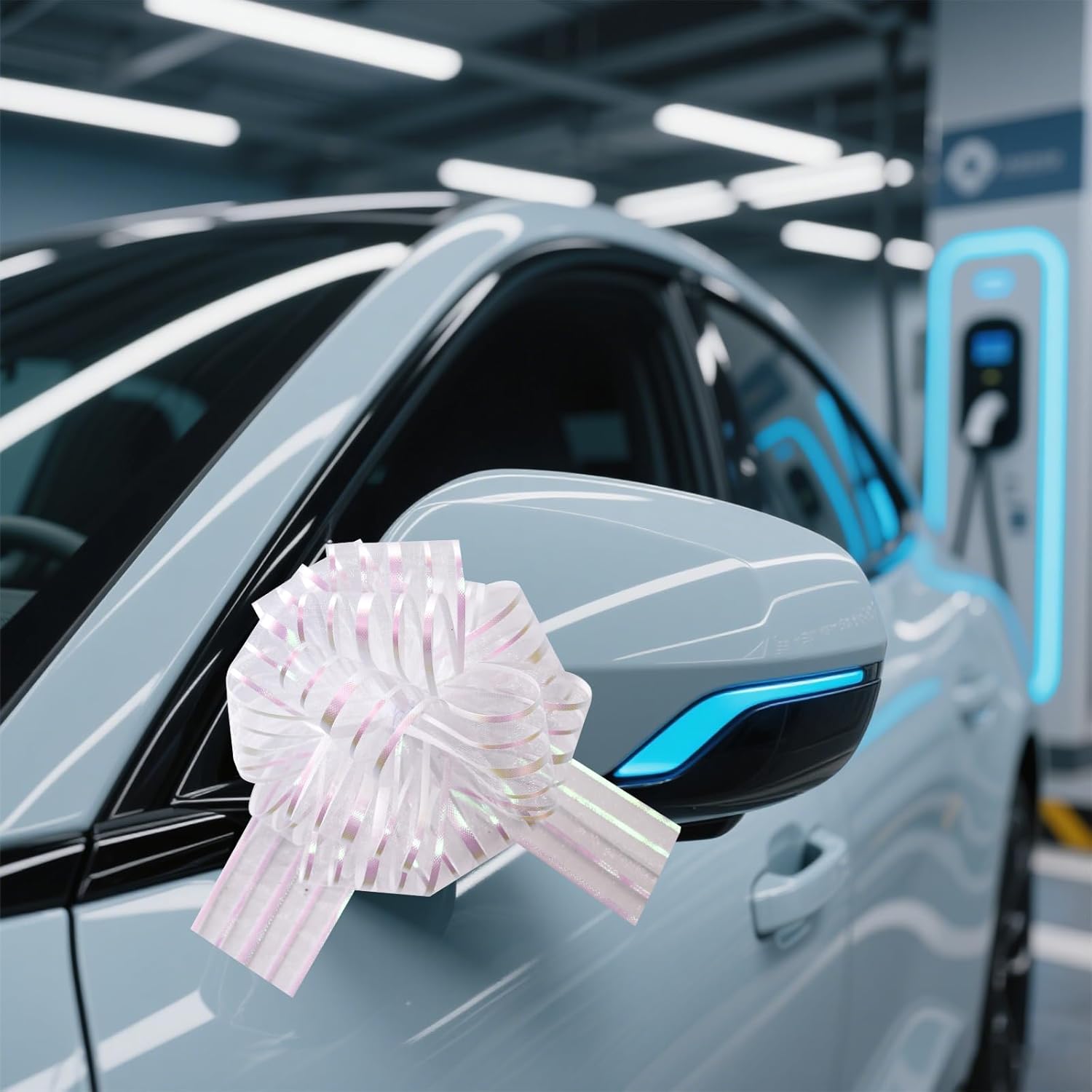 6 Pcs 6 Inch Large Organza Pull Bow Ribbon – Elegant Gift Bows for Wedding Decorations, Christmas Wrapping, Birthday Parties, Car Decor, Gift Baskets, and Valentine's Day Packaging(White)