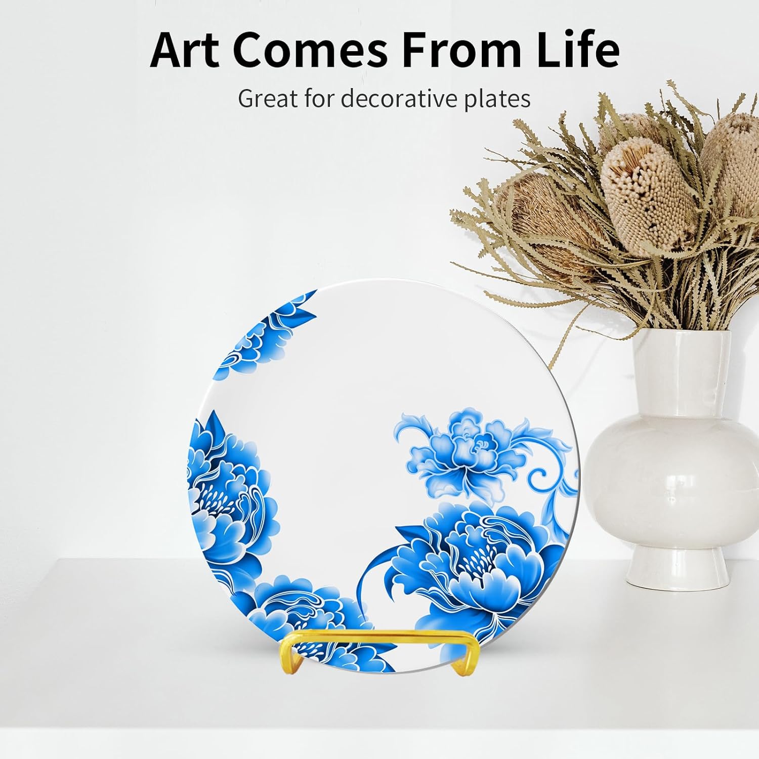 - Elevate Your Display Aesthetics: Transform any empty tabletop into a stylish showcase with our metal frame holder stand. The classic matte-coated surface adds a touch of beauty, making it a perfect addition to your desk, shelf, or kitchen countertop. These plate stands for display are not only functional but also serve as decorative ornaments in any setting