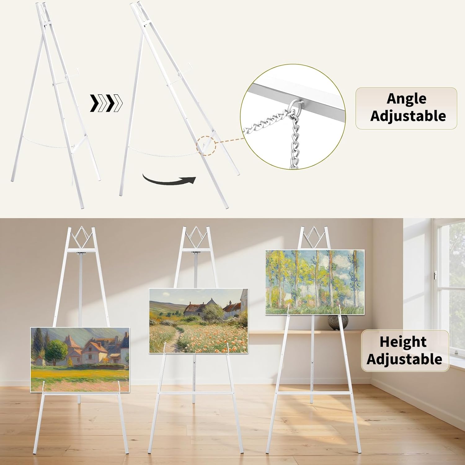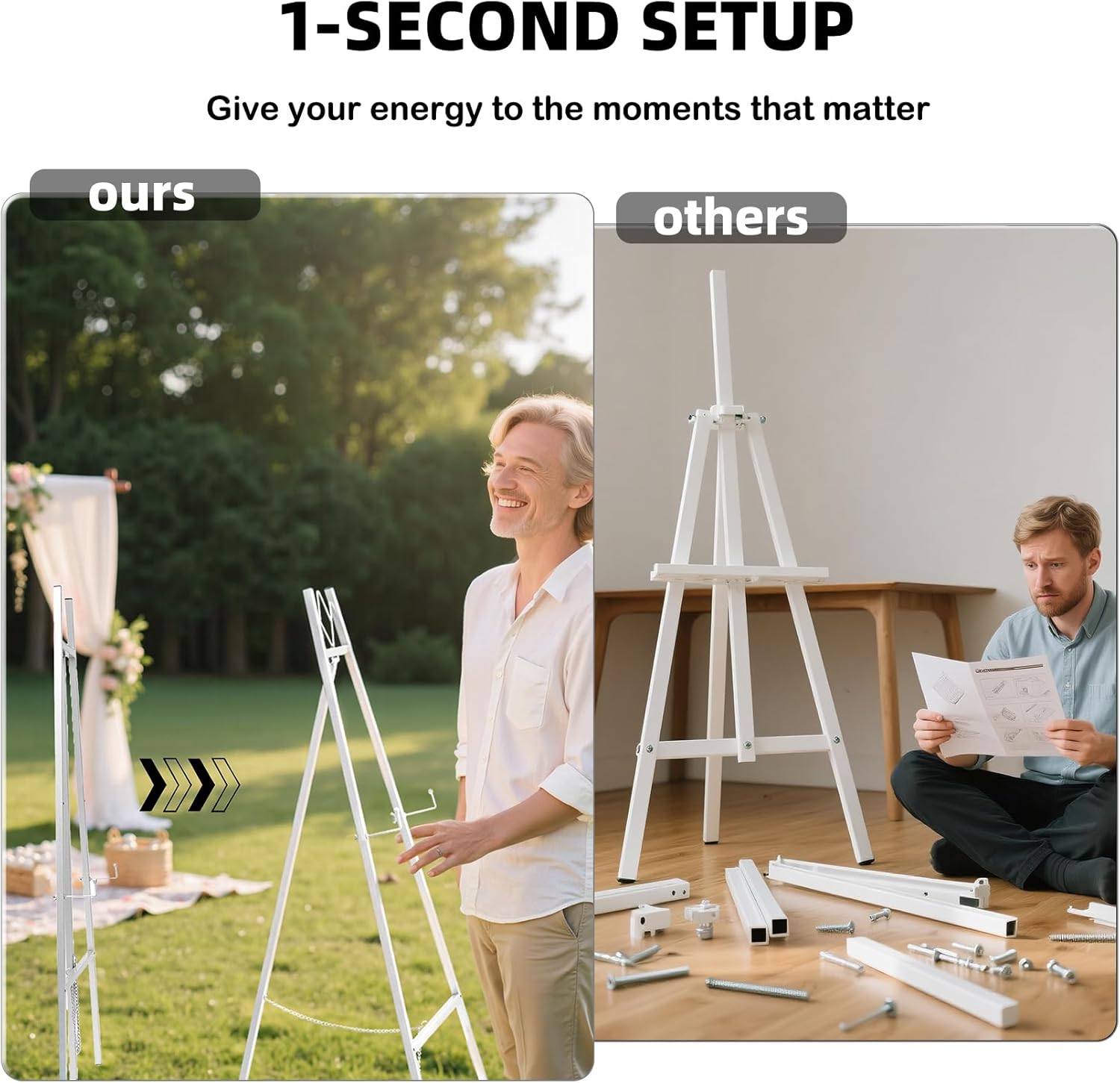 - 【CLEAN & ELEGANT DESIGN】Finished in a smooth white powder coating, this easel offers a bright, refined aesthetic that complements weddings, art galleries, and elegant gatherings without distracting from your display.