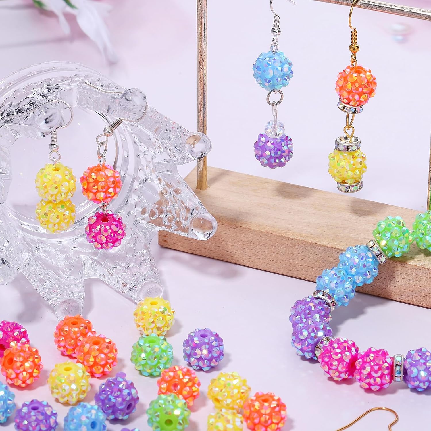 - UNIFORM RHINESTONE BALLS: Round clay beads are decorated with full Crystal rhinestone, and high-quality resin rhinestones are evenly distributed on the surface of the sphere, giving the overall visual layering of the beads. The beautifully shaped clay rhinestone beads are as colorful as disco balls, making the handmade jewelry richer.