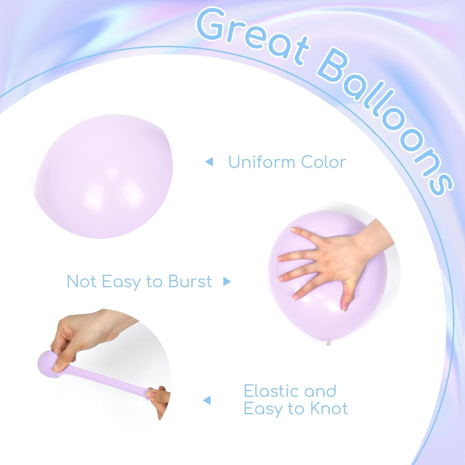 - What You Will Get: The balloons includes 12inch pearl blue balloonsx10, 12inch pearl purple balloonsx15, 12inch pastel purple balloonsx10, 12inch pink balloonsx15, 12inch pastel blue balloonsx10, glue dotsx20, white ribbonx1