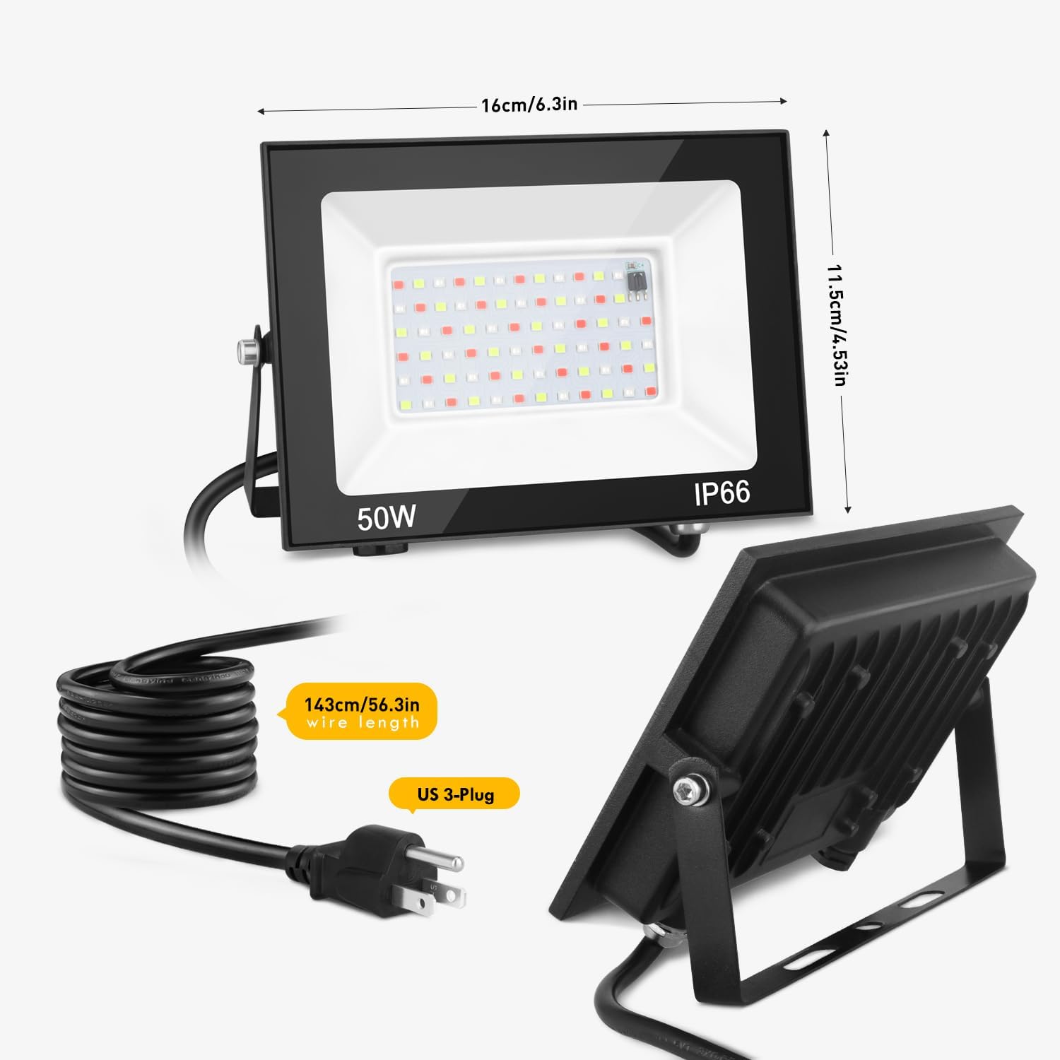 LED Flood Light Outdoor, 50W Color Changing RGB Flood Light, IP66 Waterproof Outdoor Landscape Lights Stage Lights, 3000LM Uplighting for Party, 1Pack