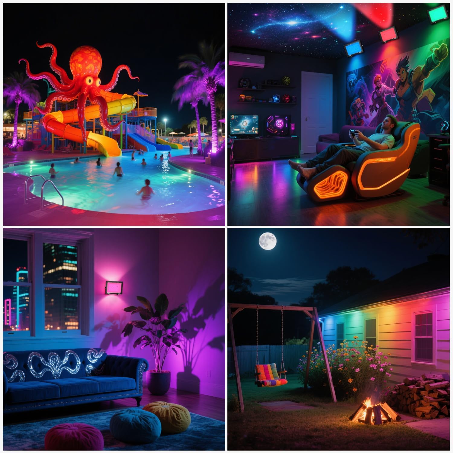 - DIMMABLE DIY COLORS & MODES: 30W RGB Flood Lights with multi colors and modes. Just pick up your favorite color, brightness