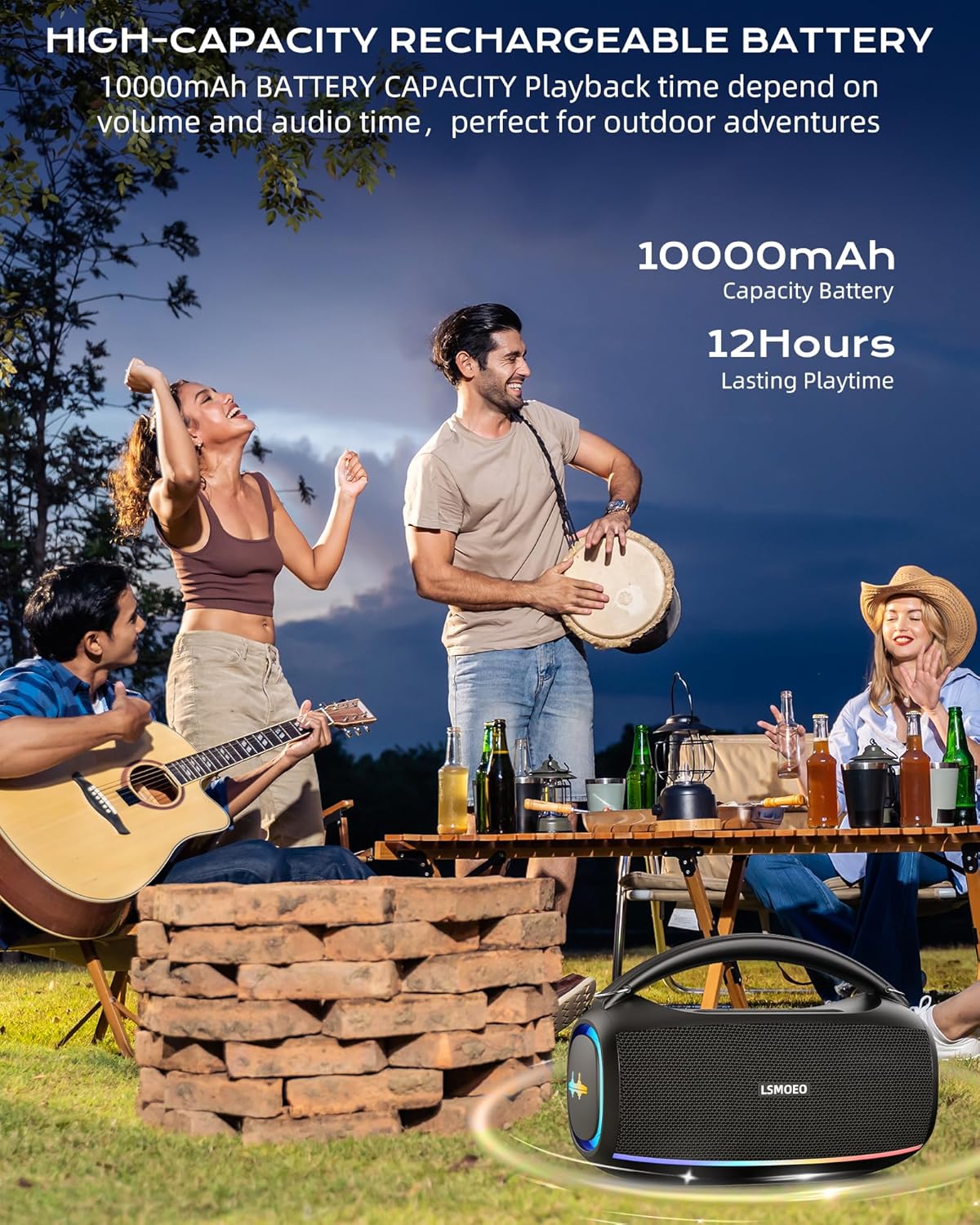 - 【 7 Dynamic Light Shows + Beat-Sync Technology】Our karaoke speaker built-in Instantly transform any space with 7 vibrant RGB lighting modes that pulse and flash in real-time to your music's beat. Feel the energy build as lights intensify with each drum hit—perfect for house parties, backyard BBQs, or cozy nights in. Turn your basement into a concert venue, your patio into a festival stage, or simply set the mood. It’s more than sound—it’s an immersive light and sound experience that elevates every moment.