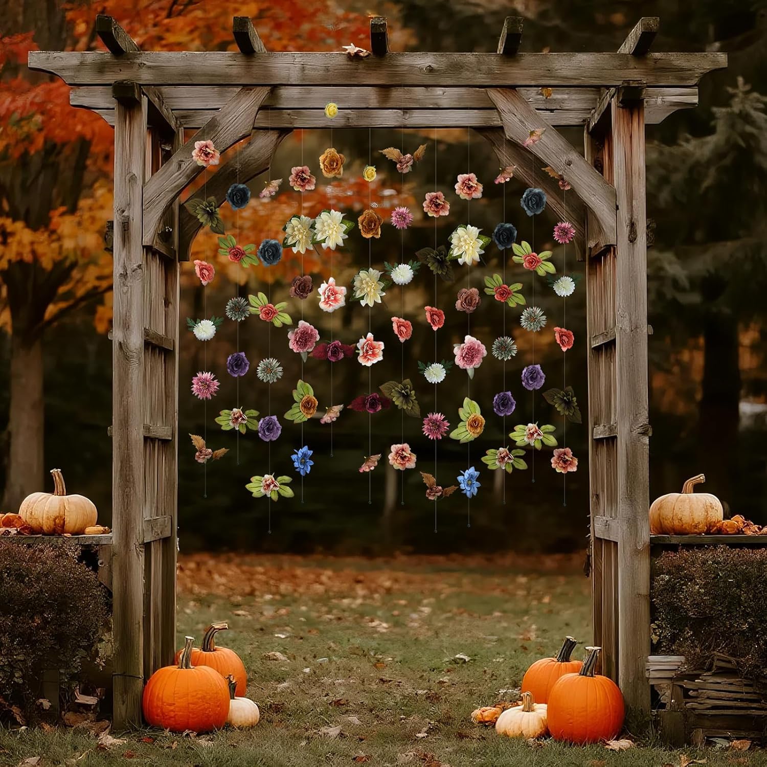 XunYee 6 Pcs 35.4 ft Flower Garlands Hanging Wildflower Backdrop Decoration Artificial Floral Garlands Fake Flower Vines Faux Silk Wildflower Decor for Halloween Fall Wedding Garden Wall Arch(Fall)