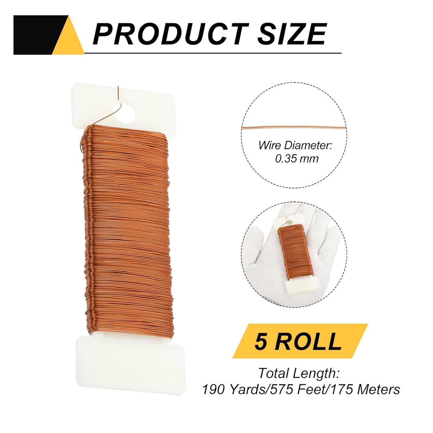 - Color: Copper; Material: Aluminum; Total Length: 190 Yards/575 Feet/175 Meters; Diameter: 0.35mm/27 Gauge; In the package of: 5 Roll Metal Floral Wire (38 Yards/ Roll)