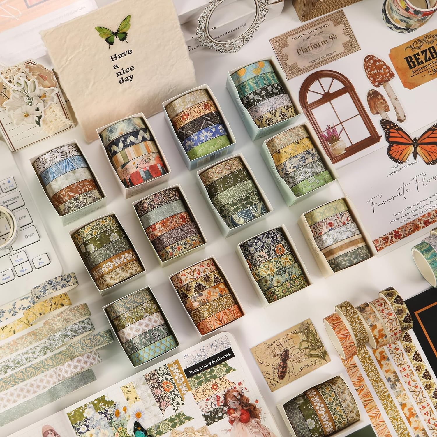 - Vibrant Washi Tape Set: 2 sets with vintage or geometric patterns for choose from. 60 different tapes are so much value and perfect for scrapbooking, journaling, and DIY crafts.