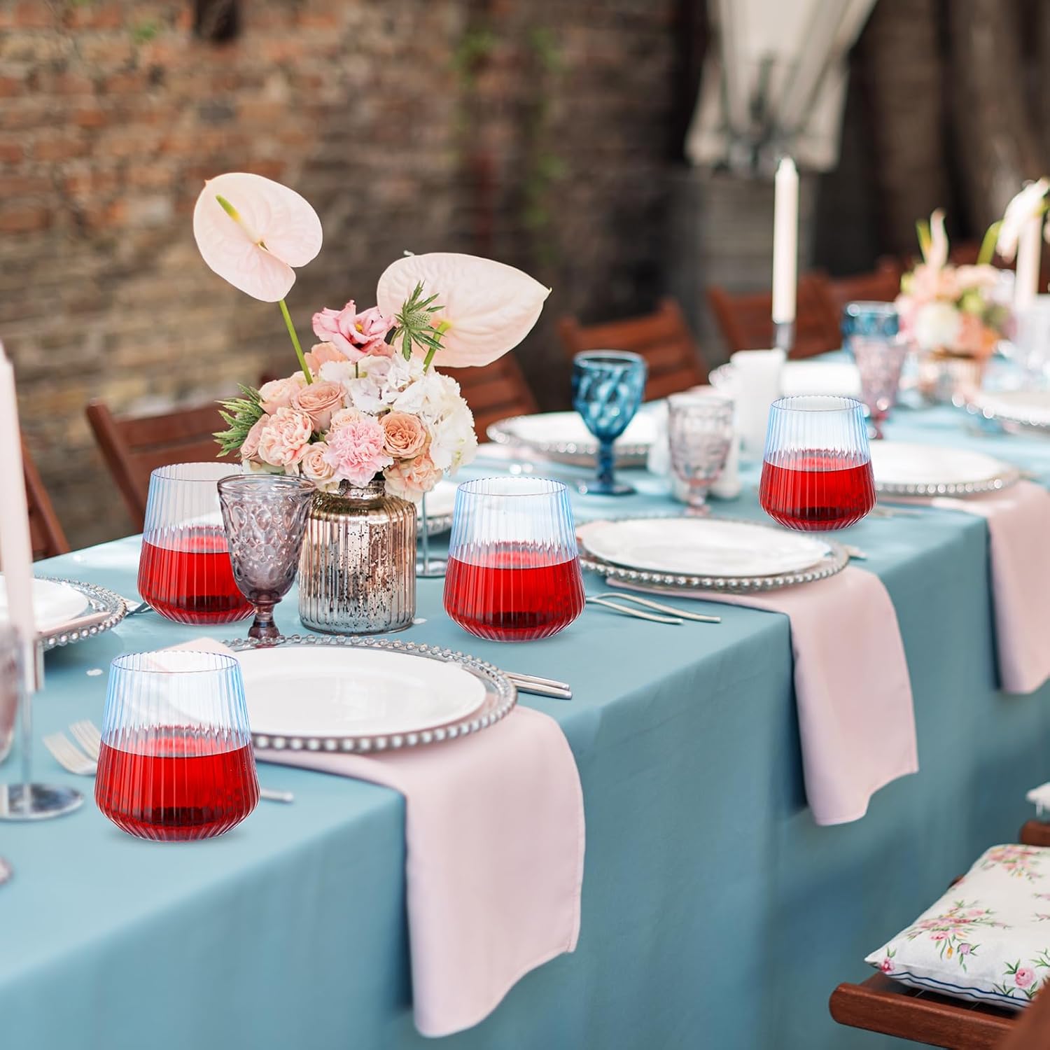 - Generous Package and Size: these ribbed stemless wine glasses come in a package of 100, sufficient to cater to your needs in an event; Each one holds about 14 oz of your beverage and stands firm at a height of about 3.54 inches/ 9 cm, a caliber of about 2.56 inches/ 6.5 cm and a maximum diameter of 3.54 inches/ 9 cm; Its versatile size and caliber make it an ideal fit for various occasions