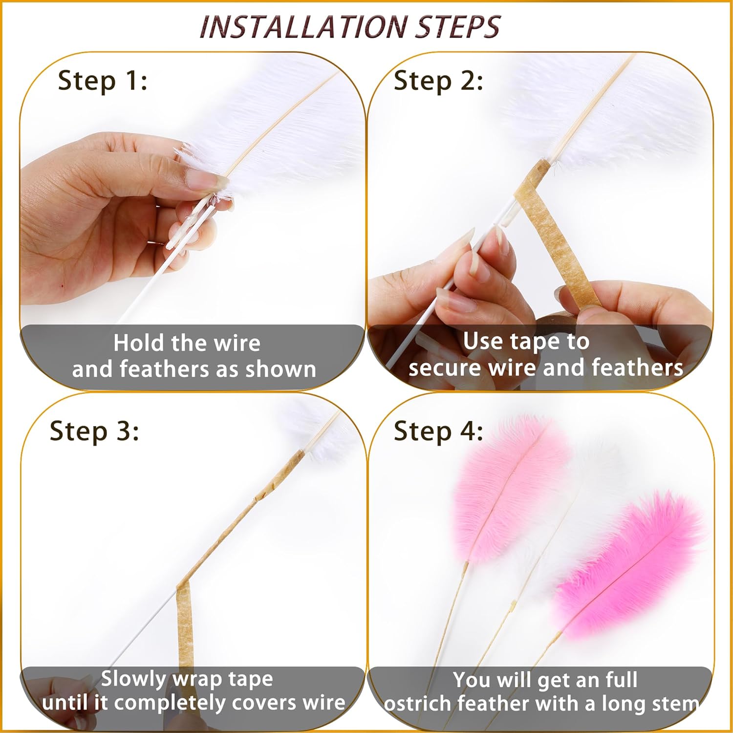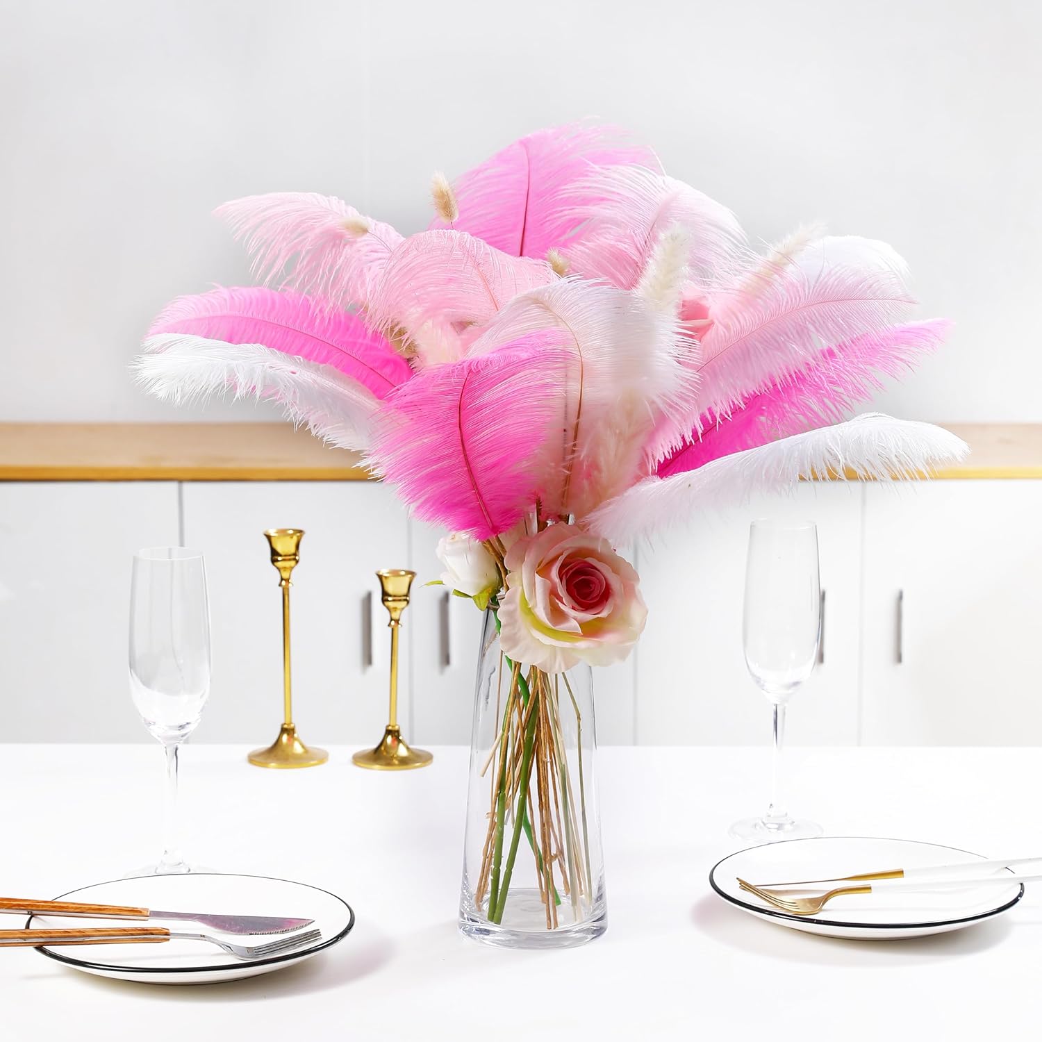 - 22inch Ostrich Feathrs Kit: 20pcs 10-12 inches pink white and light pink mixed ostrich feathers, 20 pcs 10 inches long iron wire, and a roll of 15m light brown tape. Rich set content to meet your decoration and use needs