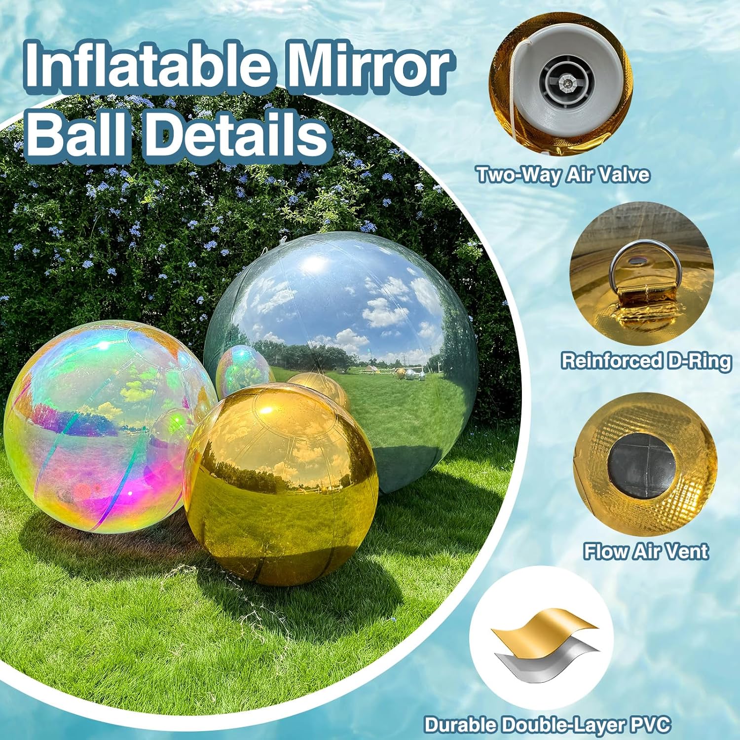 - Durable & Reusable: Our inflatable mirror ball combines thick 0.4 mm PVC outer layer with high-grade 0.3 mm reflective film, which designed for repeated use while preserving its brilliant reflective sparkle.