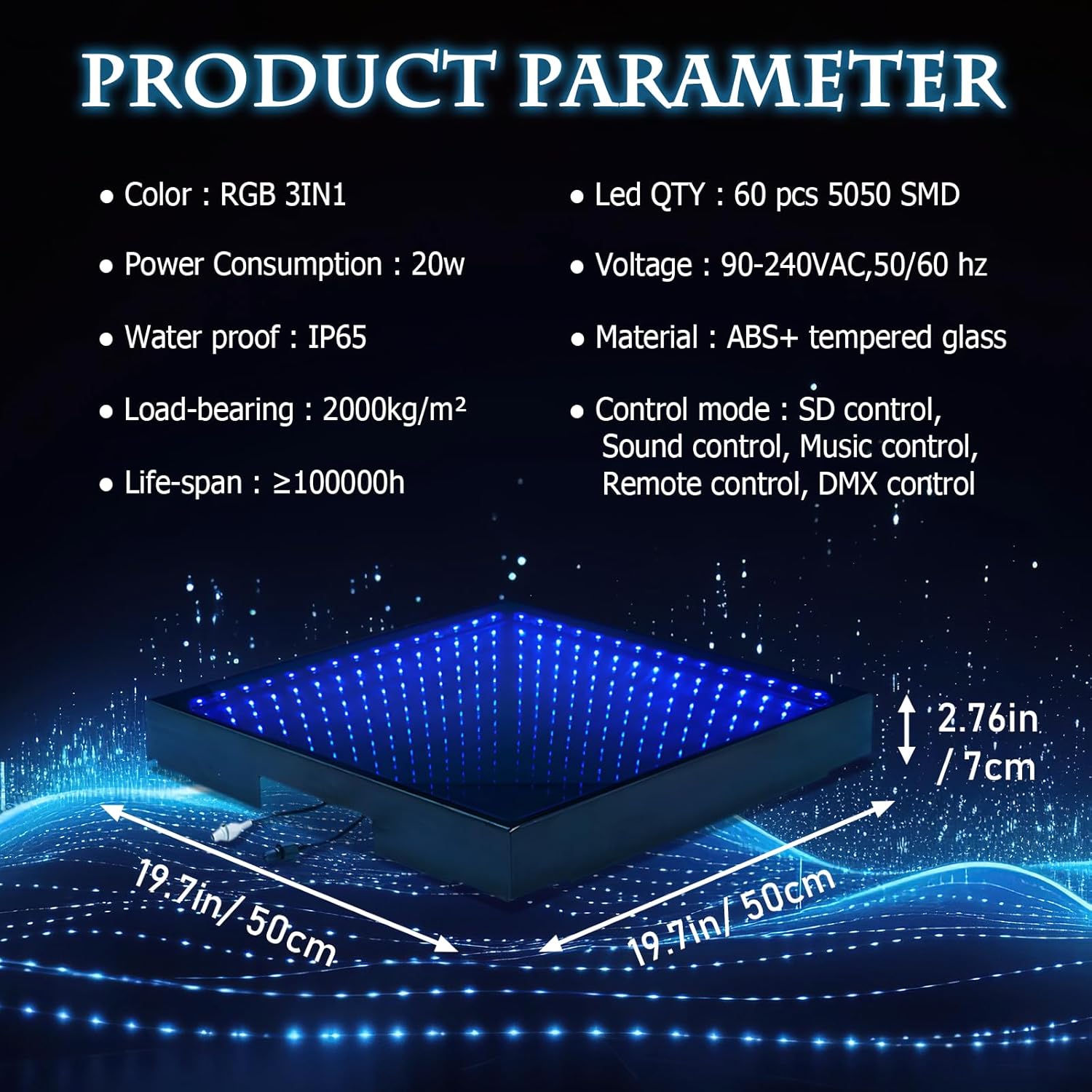 - ➤【Stunning 3D Infinity Mirror LED Dance Floor】Transform any event into a mesmerizing spectacle with our 3D infinity effect LED dance floor tiles. Perfect for weddings, nightclubs, DJ stages, and corporate events, these panels create a futuristic, immersive atmosphere with depth-defying visuals. The high-resolution LED matrix ensures vibrant lighting that captivates audiences.