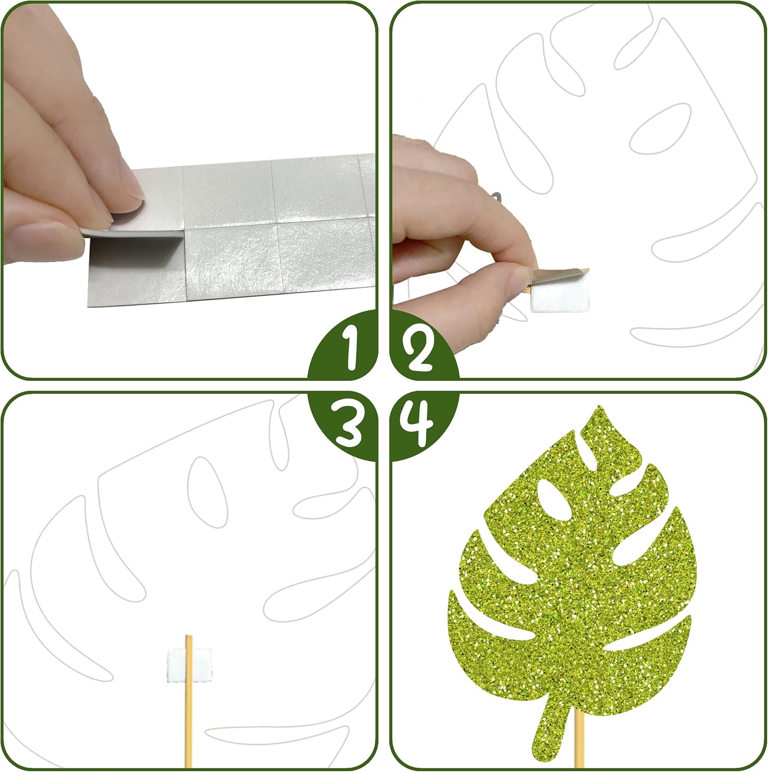 - Tropical Leaves Centerpiece Decorations for Table: Set of 20 glittering tropical leaf centerpiece sticks featuring 10 unique designs including Monstera and Palm leaf patterns