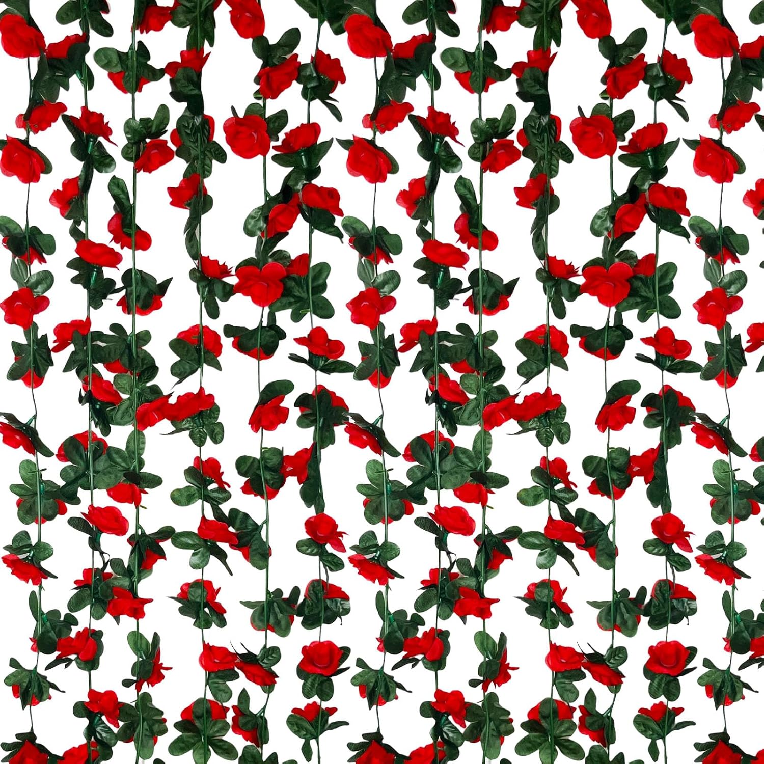 8Pcs 63Ft Red Rose Garland, Fake Rose Hanging Flowers, Artificial Flower Vine, Hanging Floral Vine Garland for Wedding, Birthday Party, Wall Arch, Halloween, Christmas Garden Backdrop Decor