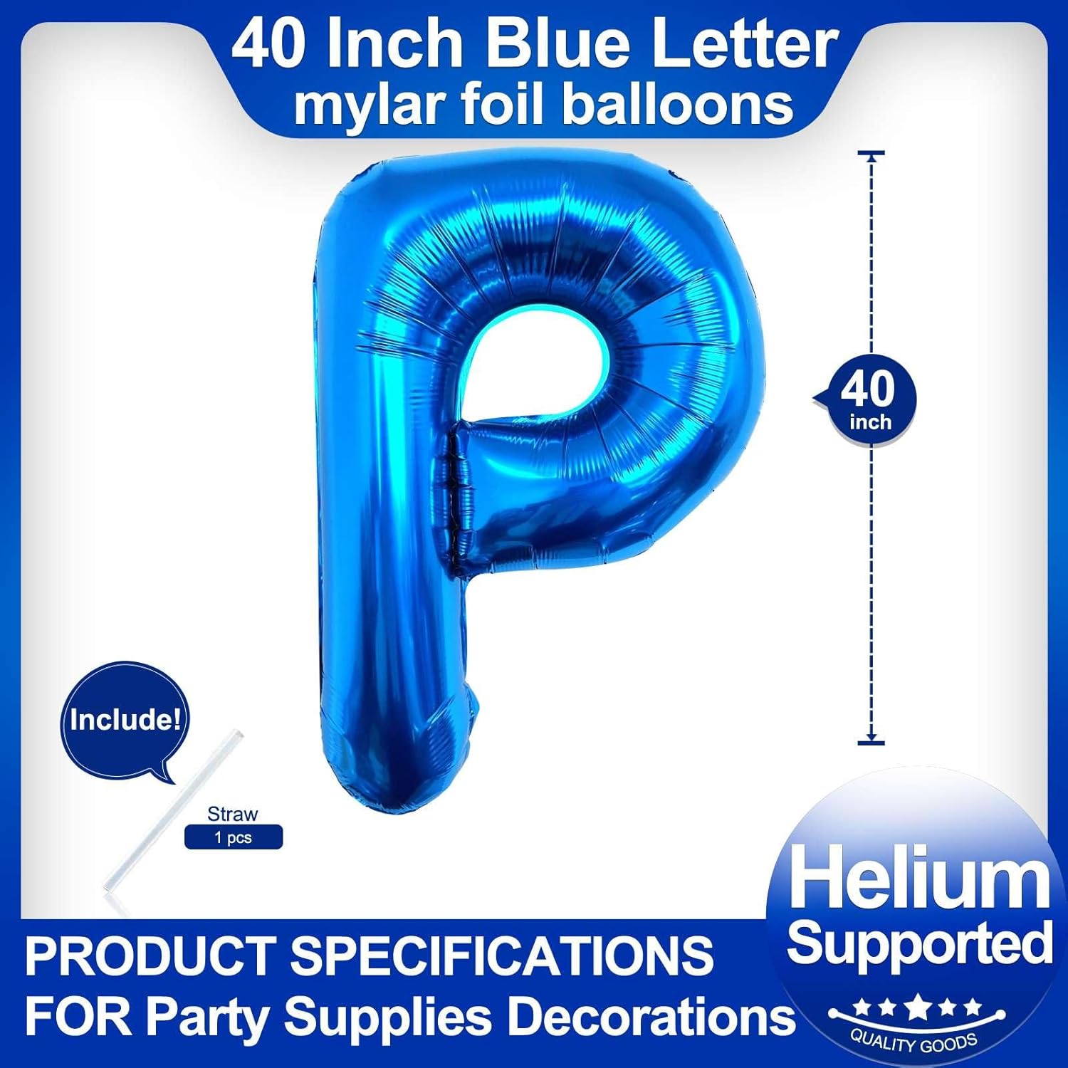 - Package included:One Blue Letter P Balloon*1,straw*1,40 inch Blue letter balloon