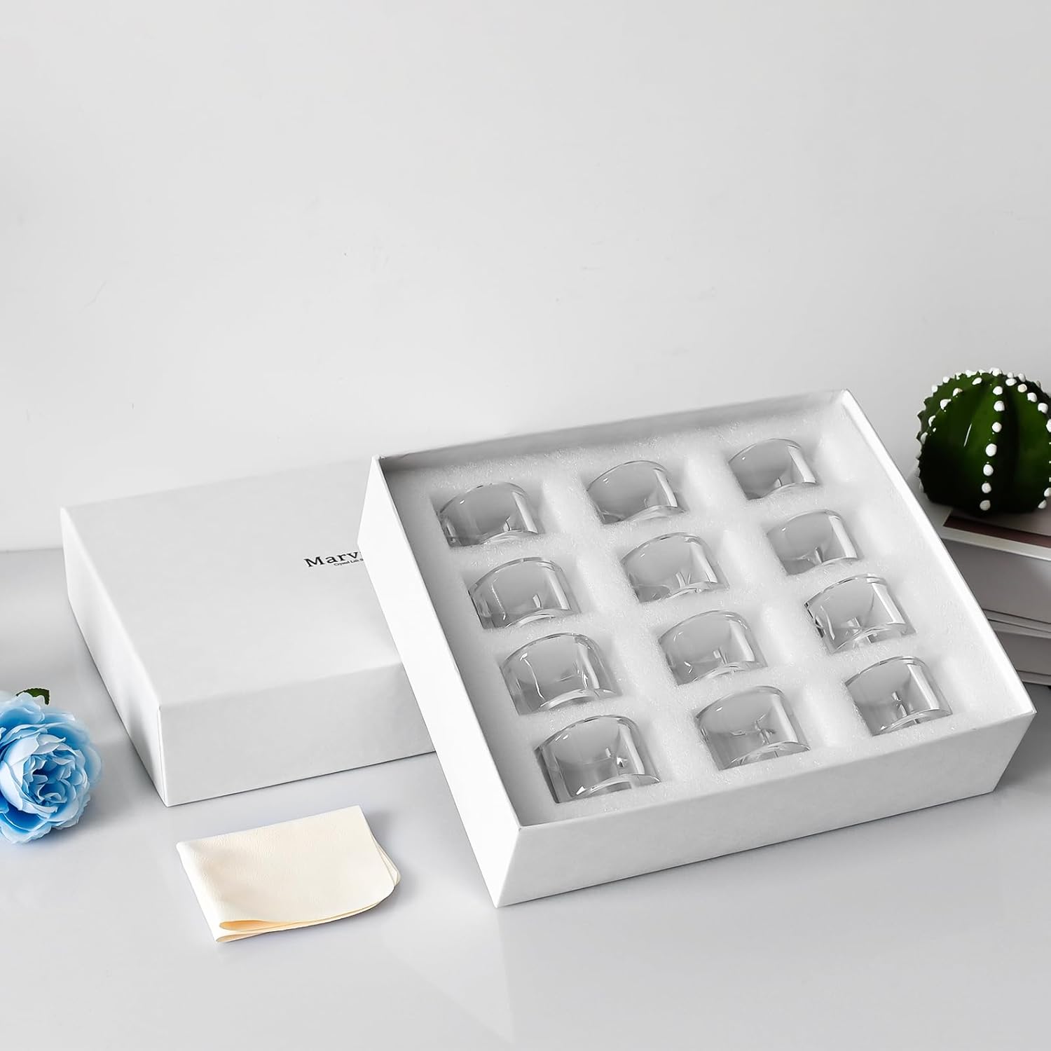 Crystal Napkin Rings, Elegant Dining Table Holders for Formal & Casual Dining, Wedding Reception, Holiday Table Setting, 12 Pack