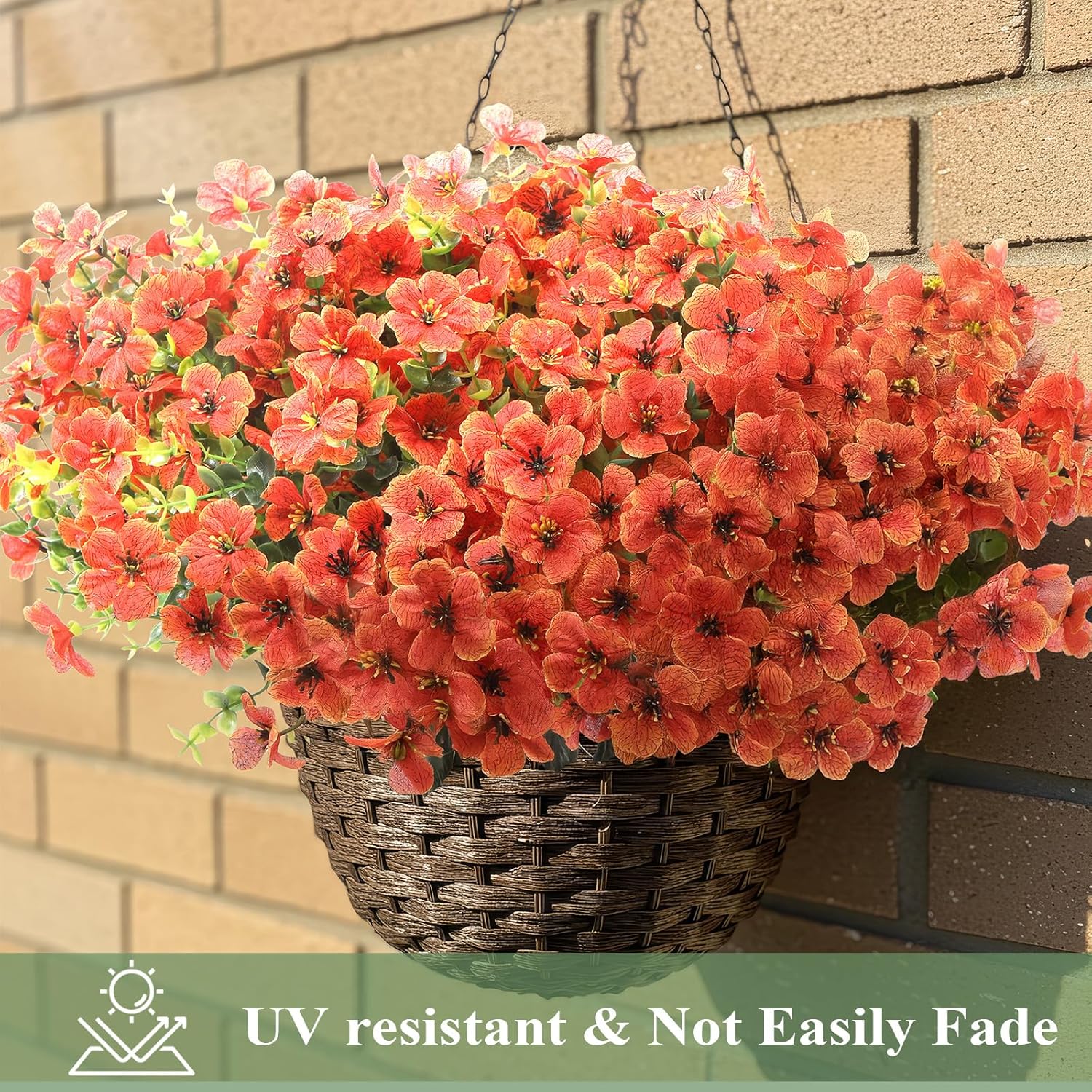 Artificial Flowers for Outdoors 24 Bundles, UV Resistant Orange Fake Silk Flower Fall Autumn Garden Decor Wedding Window Door Decorations