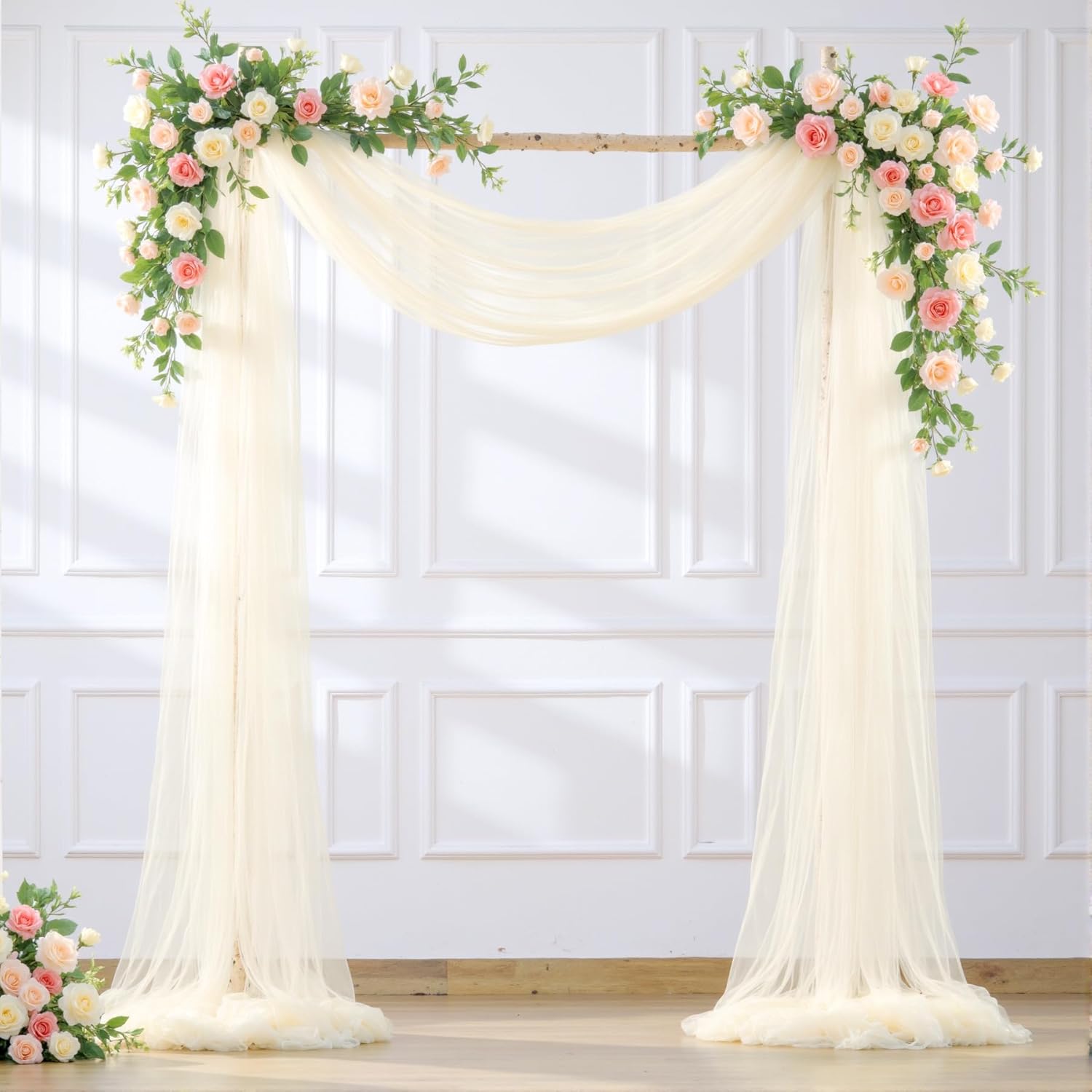 - Best Choice Wedding Arch: Package includes 1 panel ivory wedding arch sheer drapes, each panel is 60 inches wide and 26 ft long. The drape of the fabric is perfect for use in a wedding arbor. These arch fabric add a pretty touch to pillars at a wedding.