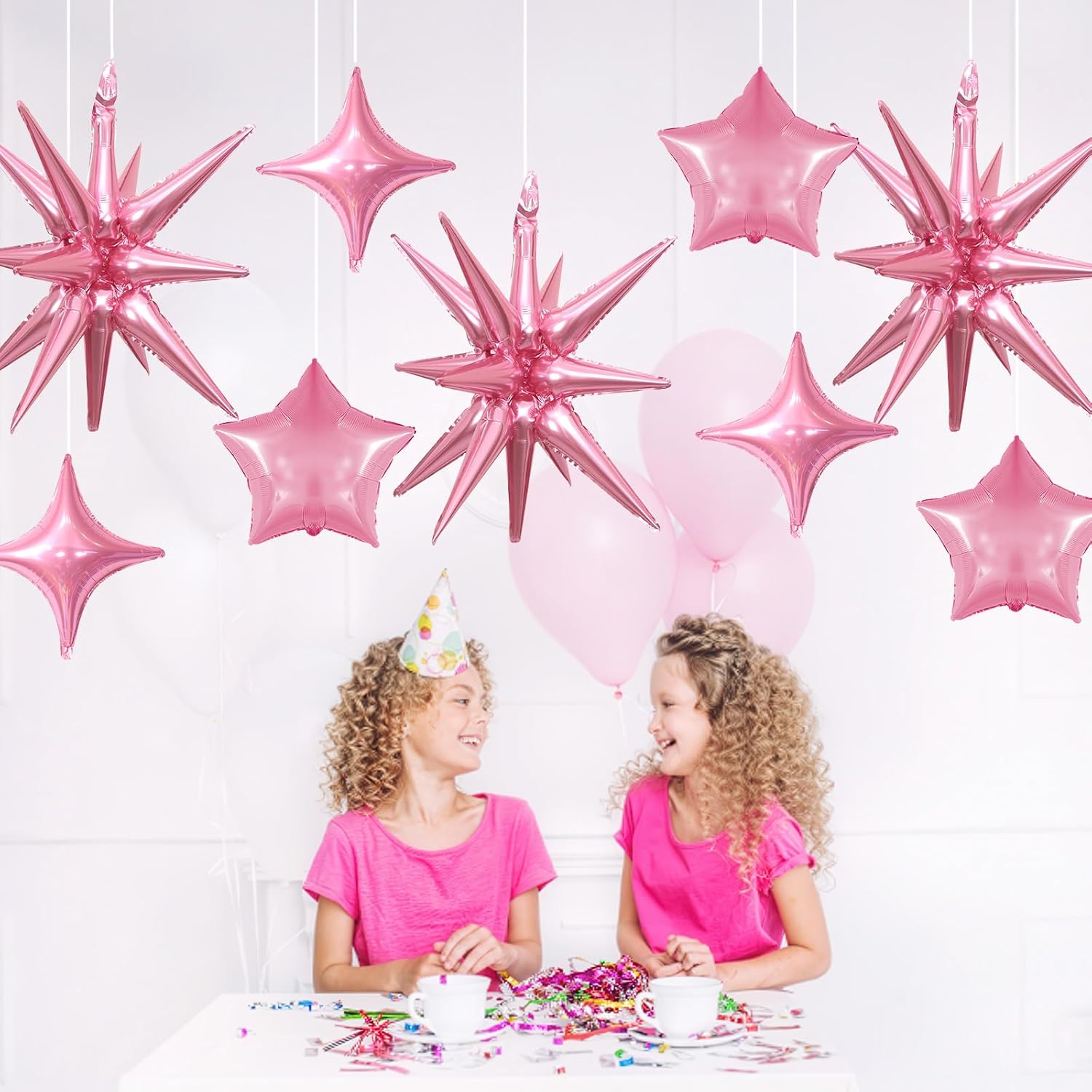 - Pink Star Balloons Set: Package includes: Pink aluminum foil star balloons (explosion stars Γ 3, four-pointed stars Γ 6, five-pointed stars Γ 6) , a straw and ribbon