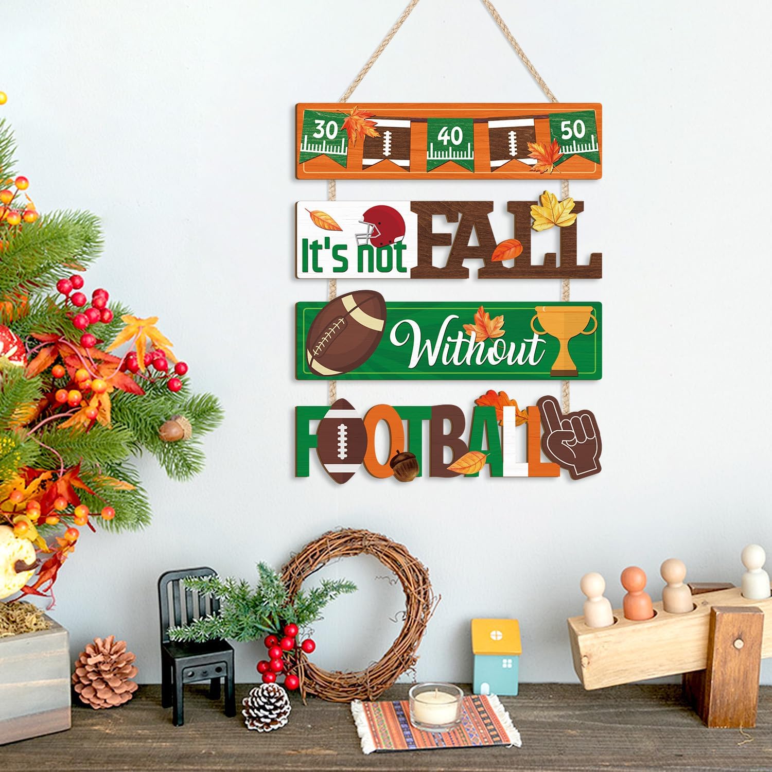 - It's Not Fall without Football Front Door Sign: CHDITB welcome fall sign incorporates elements of autumn and American football, using warm autumn tones to create a cozy and vibrant atmosphere. It is ideal for decoration at autumn sports events.