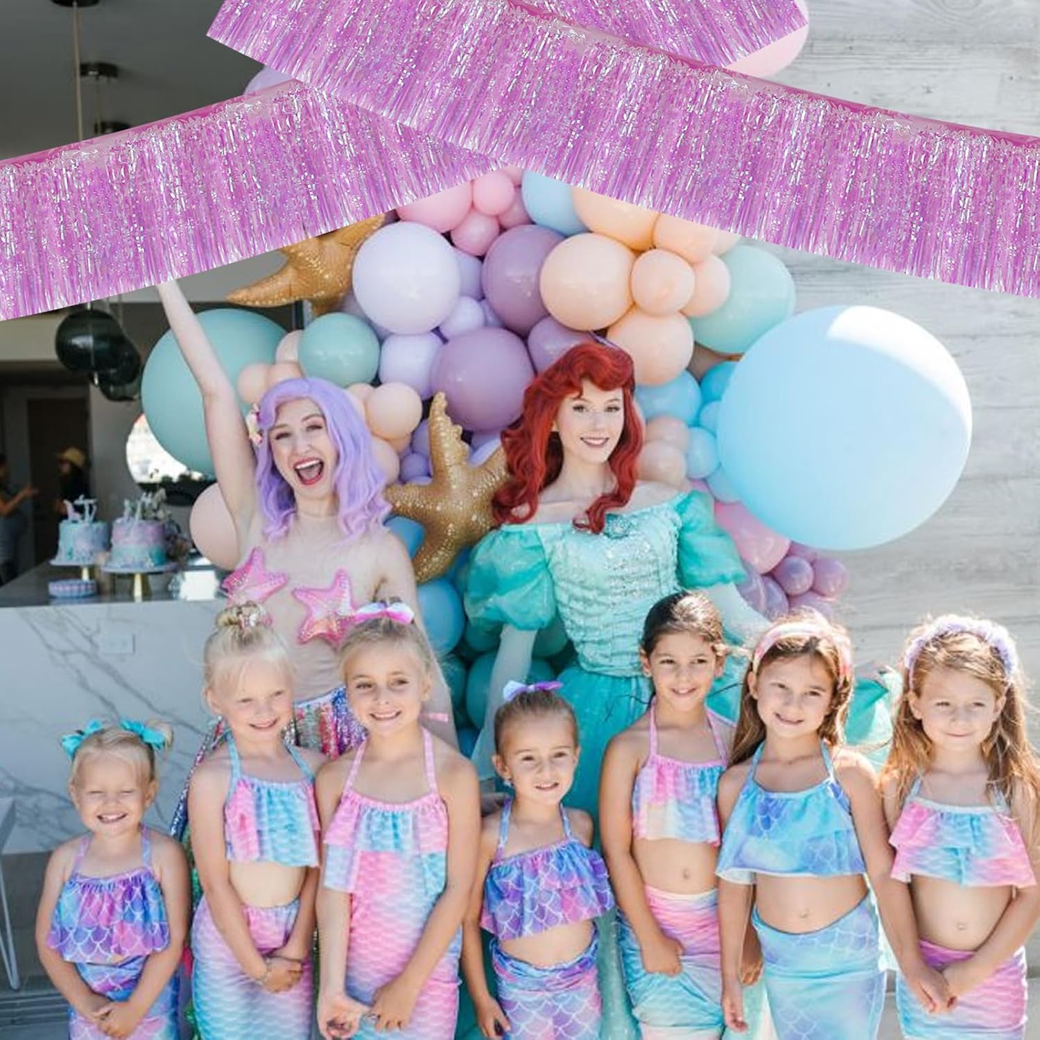 BEISHIDA 3 Packs Metallic Foil Fringe Garland Shining Purple Wall Hanging Tinsel Fringe Banners for Car Floats Bridal Shower Wedding Birthday Easter Graduation Holiday Party Decoration(30 Feet)