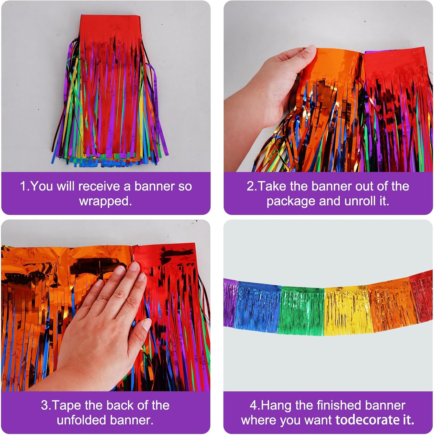 - 【Package includes】:3 Packs shiny fringed tassel banner, each tassel garland is about 10 feet long, enough to decorate your party.