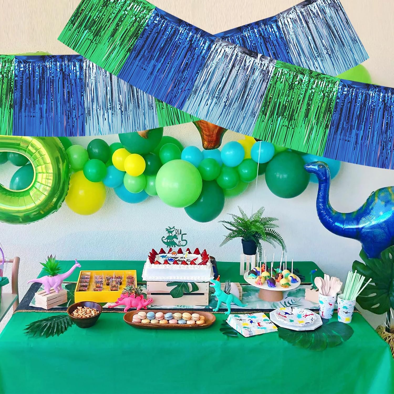 BEISHIDA 3 Packs Metallic Foil Fringe Garland Blue Green Wall Hanging Tinsel Fringe Banners for Car Floats Bridal Shower Wedding Birthday Easter Graduation Holiday Party Decoration(30 Feet)