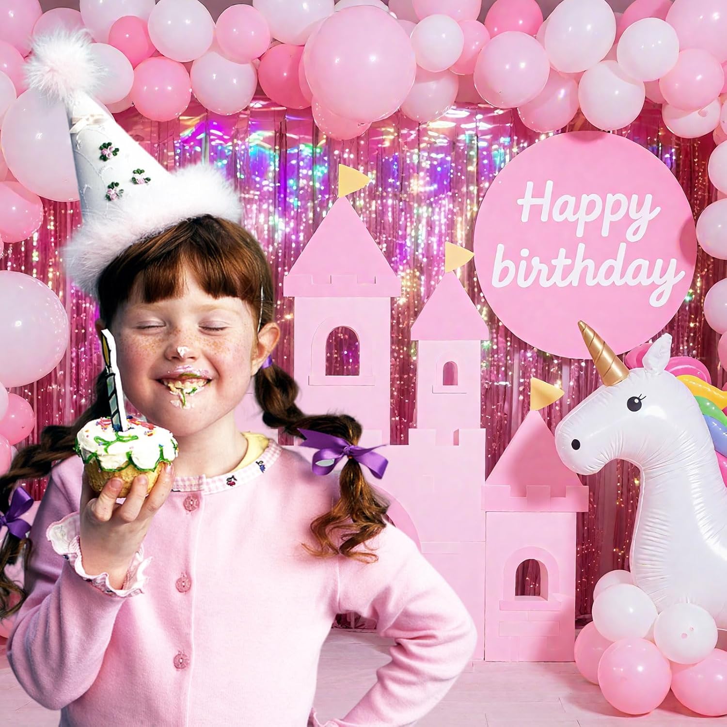 - Pink Fringe backdrop Set (5-Pack): Each dazzling curtain measures 3.28ft x 6.56ft – perfect for doors, walls, or photo booths! These extra-long foil streamers instantly transform any space into a party-ready celebration zone. Mix, layer, and customize your decor for the best results.