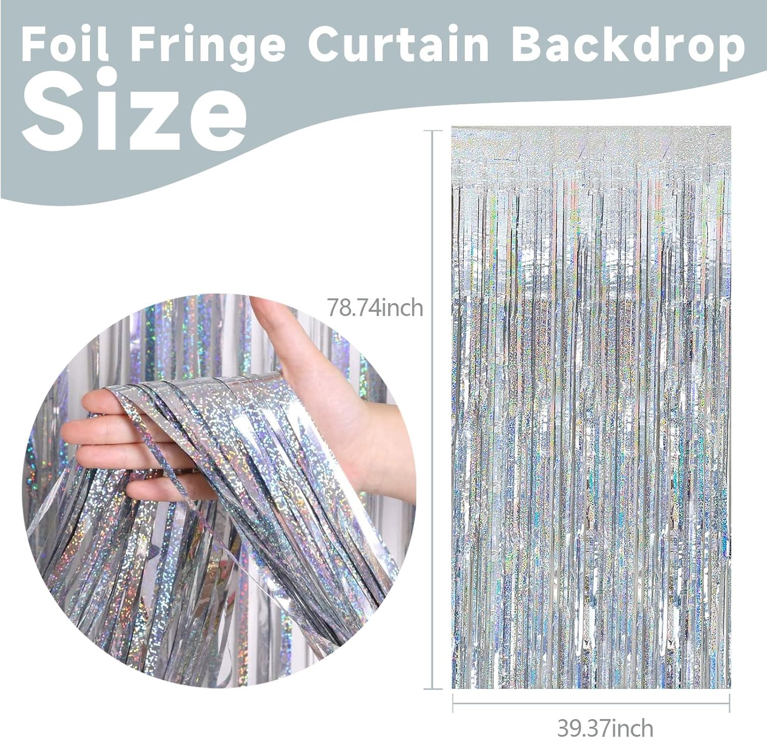- Glitter Fringe Backdrop Set (5-Pack): Each dazzling curtain measures 3.28ft x 6.56ft β perfect for doors, walls, or photo booths! These extra-long foil streamers instantly transform any space into a party-ready celebration zone. Mix, layer, and customize your decor for the best results.