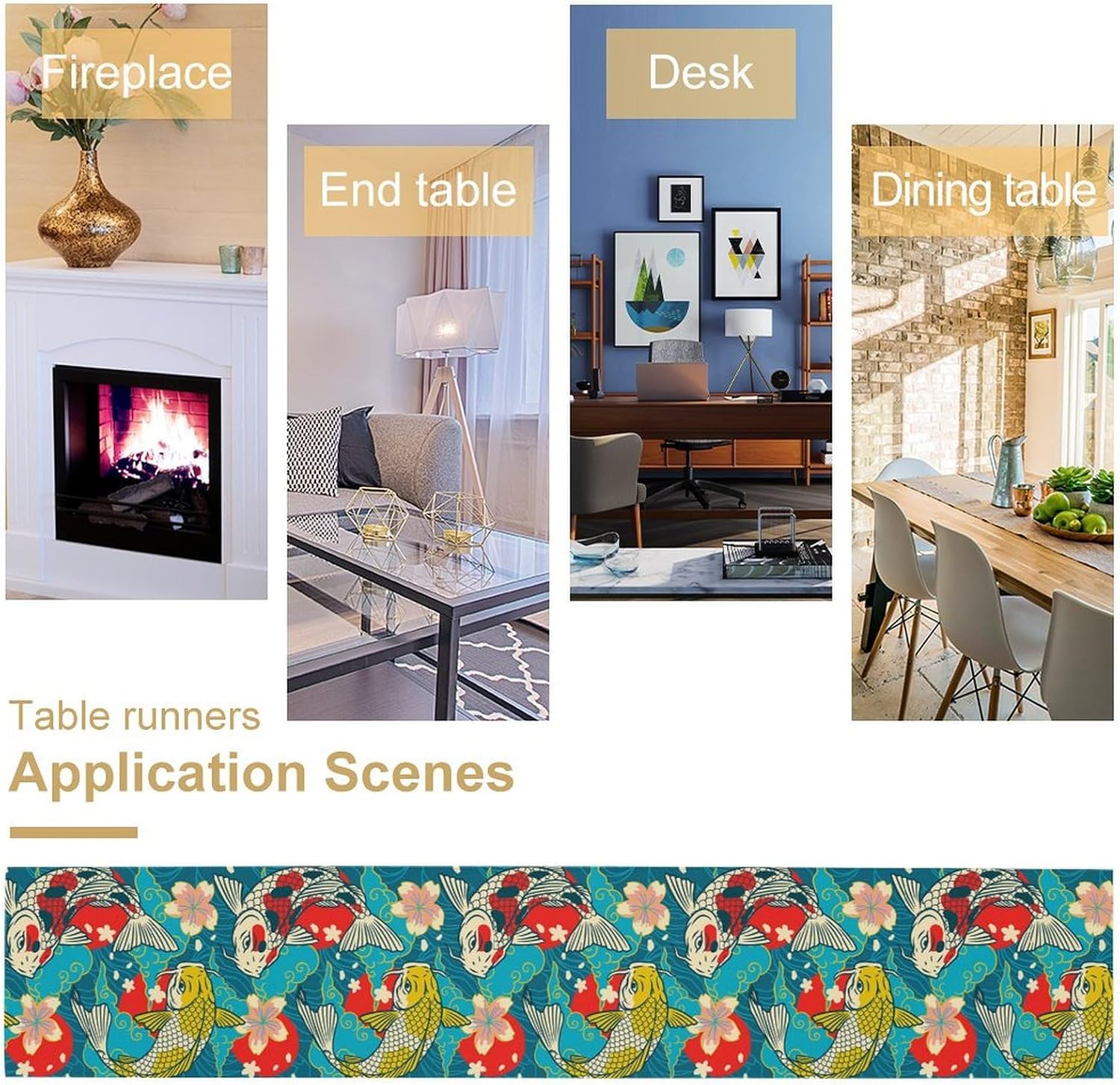 Japanese Kio Fish Table Runner Oriental Tradition Cherry Art Printed Burlap Runner Home Kitchen Dining Table Living Room Decor Fabric 1 Panel W13xL120in