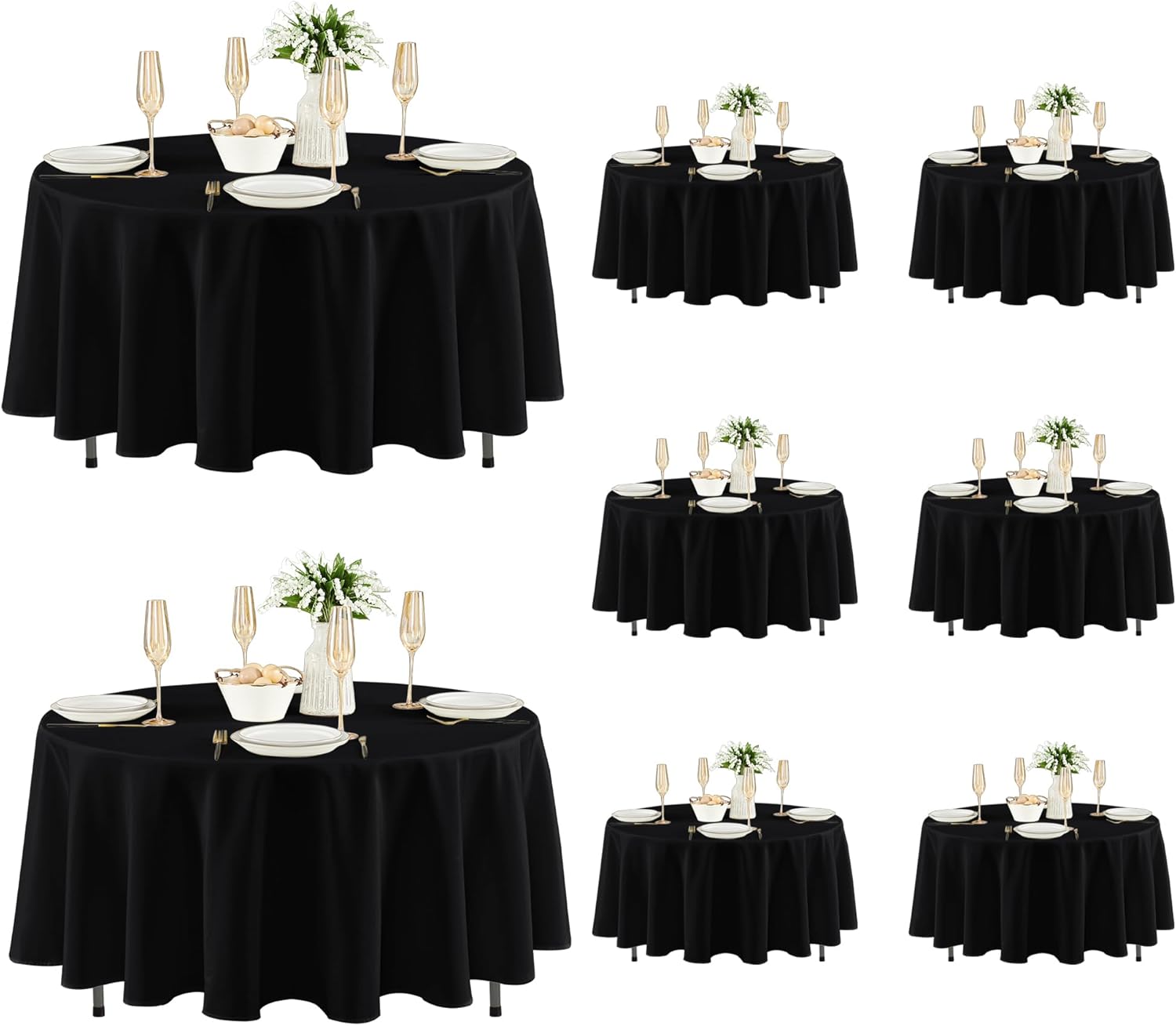 Fitable 8 Pack Round Tablecloths: Stain Resistant Wrinkle Free Circle Table Clothes, Washable Reusable Polyester Table Covers for Wedding Party Birthday Banquet Reception(Black, 70 Inch)