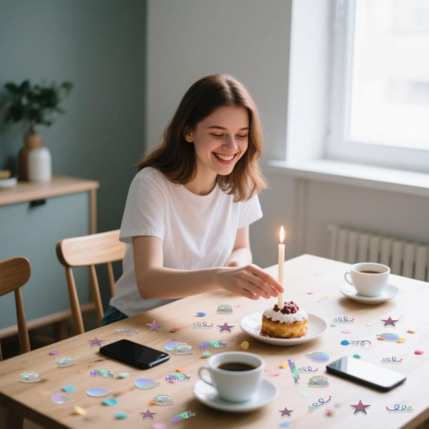Iridescent Happy Birthday Confetti, Birthday Party Confetti Metallic Foil Sprinkles Confetti Decorations for Kids Adult Party Baby Shower Decor, DIY Arts and Crafting
