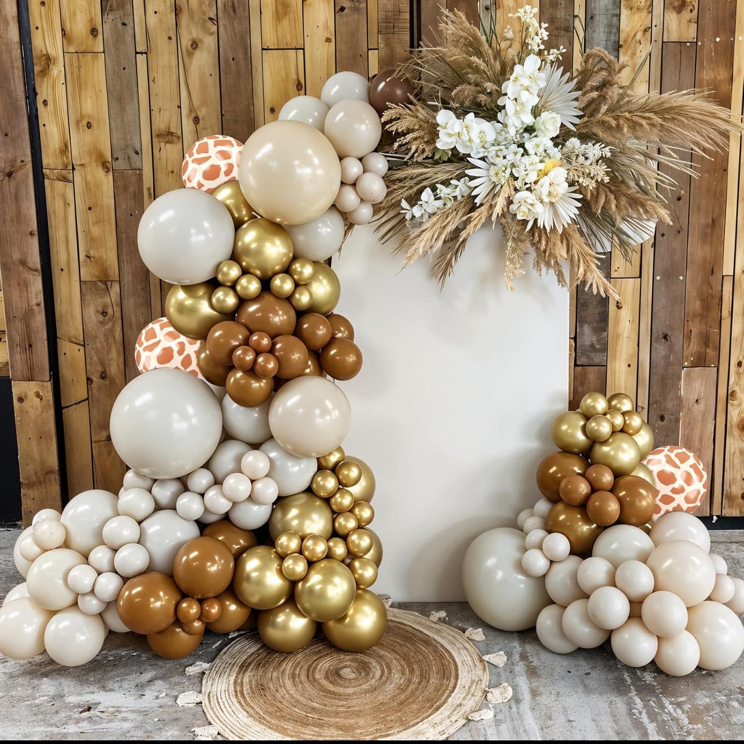 - All-in-One Set: This brown gold balloons kit includes 12pcs retro sand white balloons, 10pcs retro nude balloons, 8pcs metallic gold balloons, 12pcs coffee brown balloons, 10pcs light brown balloons, 8pcs giraffe print balloons, and 1pc gold ribbon. Whether it’s a birthday bash, wedding, or bridal shower, the thoughtful color combo, suitable for adding a fun, modern touch to any celebration.