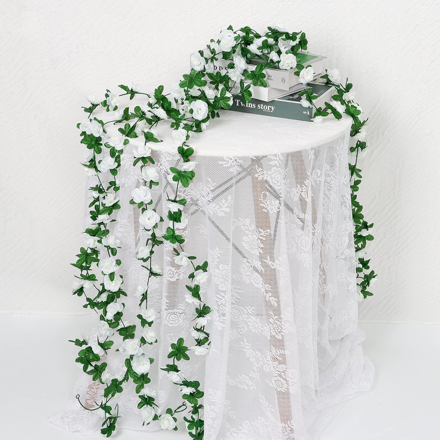 - 【Abundant Application】White rose garland decorations can create a romantic and fairytale atmosphere for your life. Suitable for many scenes such as wedding arch, birthday party, anniversary, Valentine's Day. It can be used to decorate dinner-table, gardens, fencing, sheds, swing frame, rattan chair, air-conditioning pipes, exposed wires, stairs, shop, restaurant, office, etc.