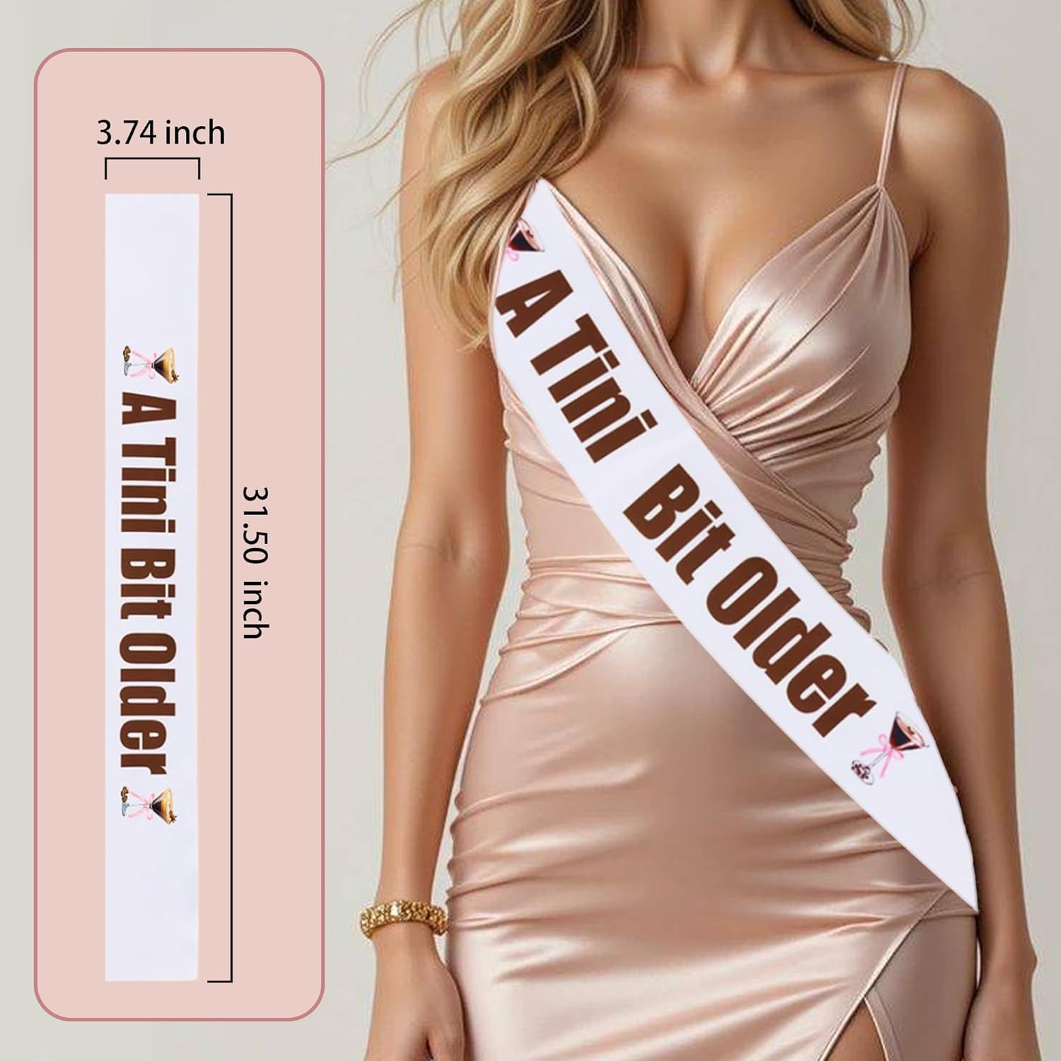 - A Tiny Bit Older Birthday Sash: You will receive 1 pcs exquisite espresso martini a tiny bit older birthday sash, which is designed to bring charm and whimsy to your party, featuring playful martini glass designs and cute olive motifs for a fun-filled event.