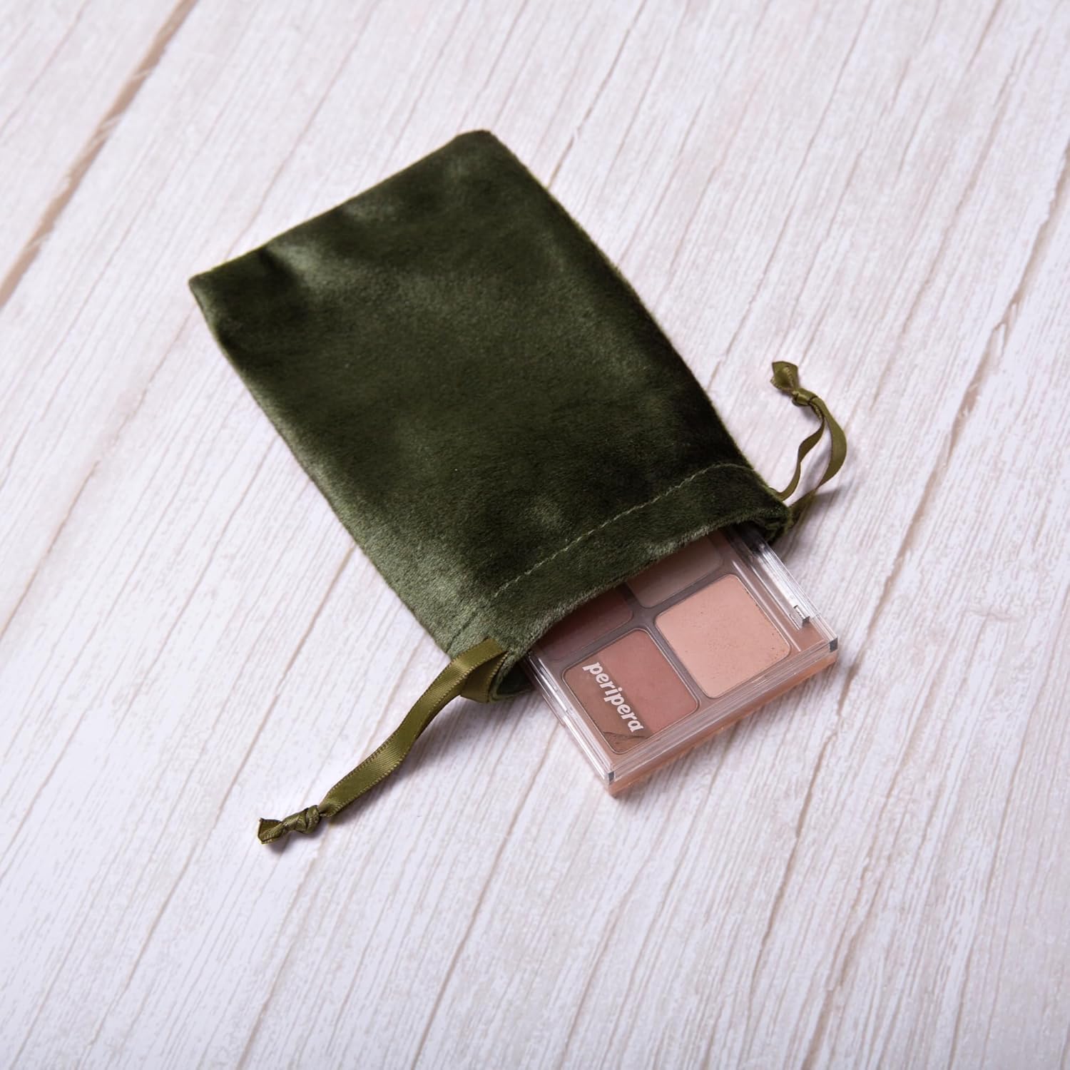 QIANF 12pcs Moss Green Velvet Drawstring Bags 4x6 inches Glossy Small Velvet Cloth Gift Bags Jewelry Pouches for Jewelry Storage Wedding Party Favor Christmas