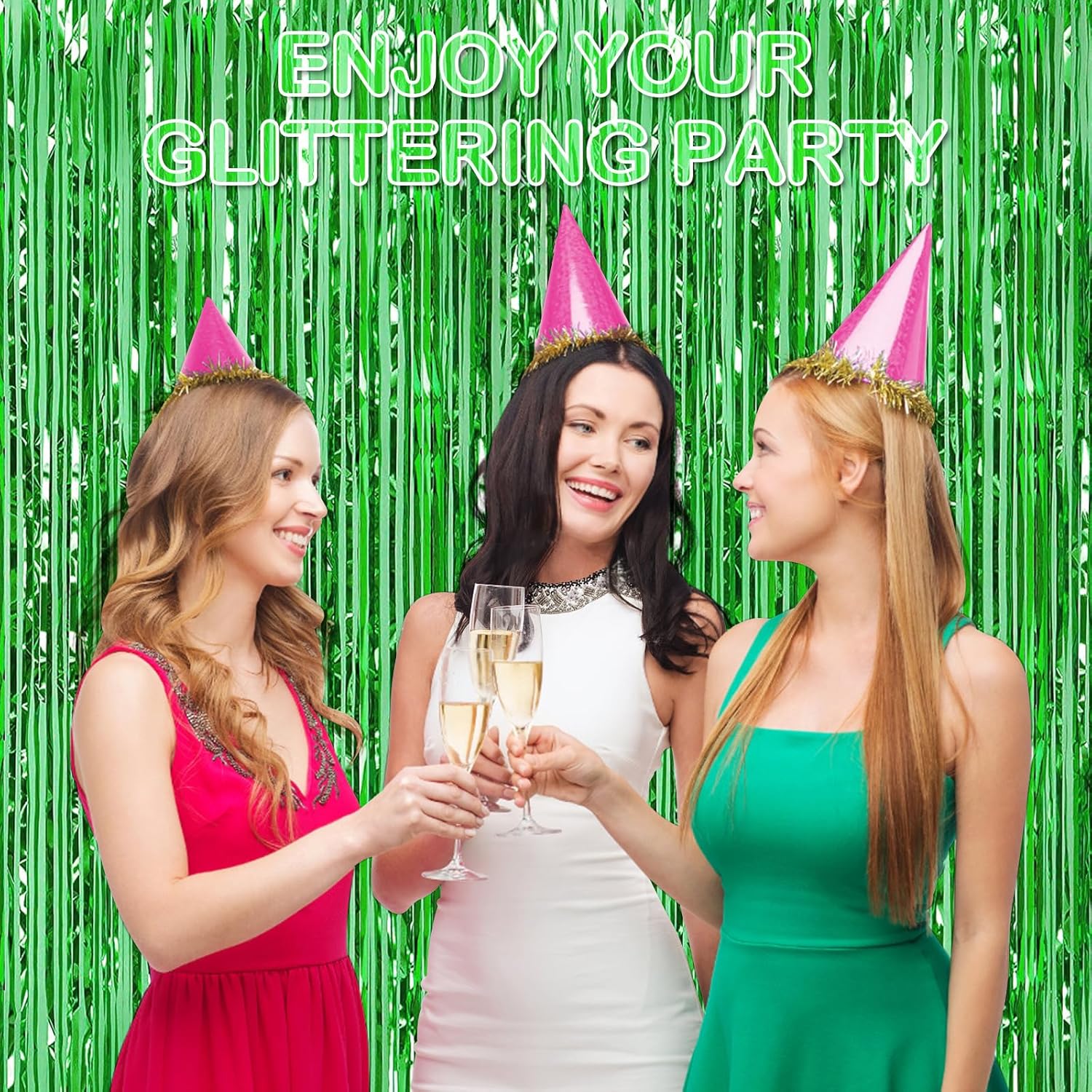 - 【Premium Material】The green foil curtain backdrops are made of sturdy and flexible tinsel with a shiny and reflective surface, which will maintain the glitter effect all the time. Great for creating a sparkling atmosphere as decorations for parties.