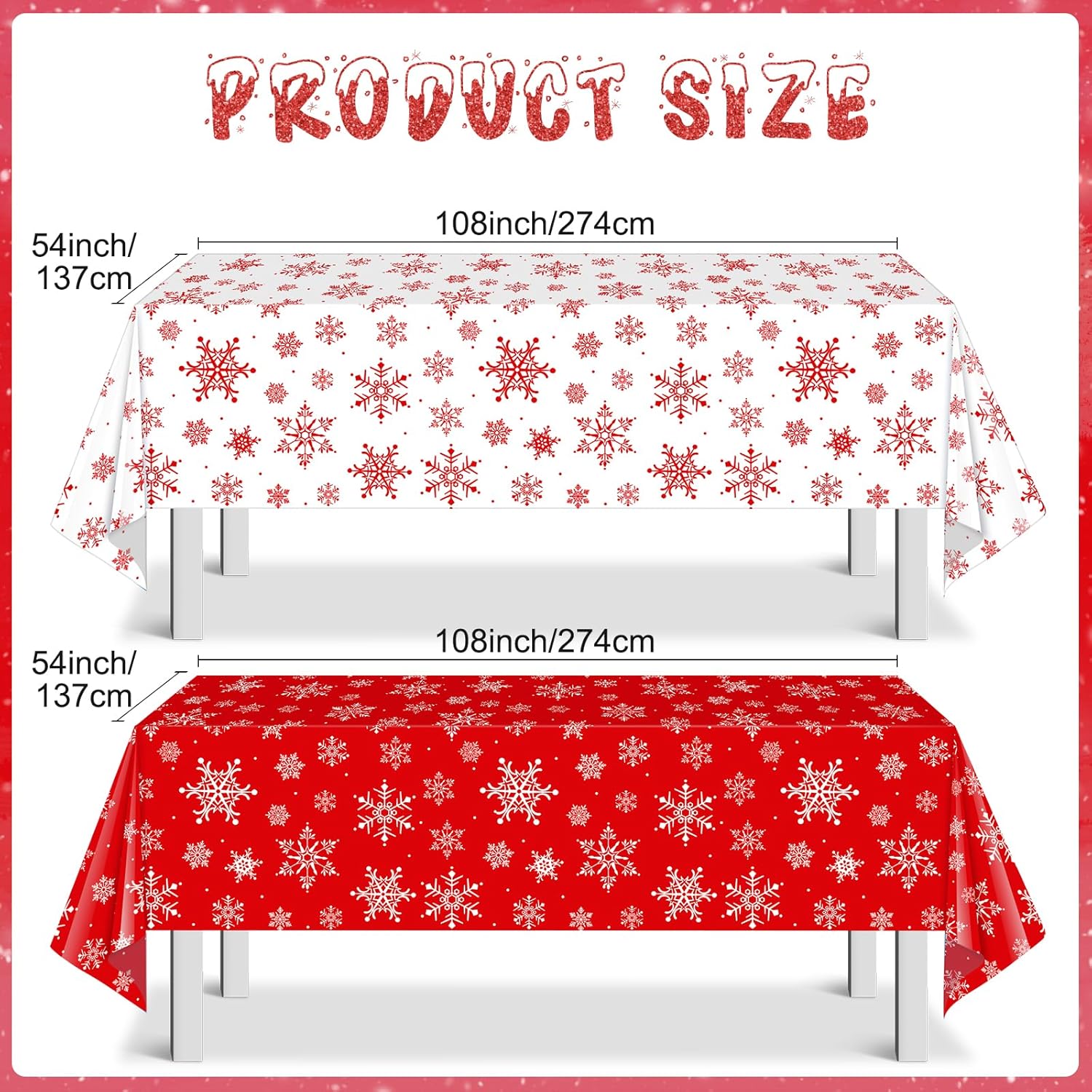 - What will you receive: 6 pieces red Christmas party tablecloth and 6 piece white Christmas plastic tablecloth,all over printed with snowflake patterns,ideal for decorating your winter holiday and Christmas party supplies and decorations