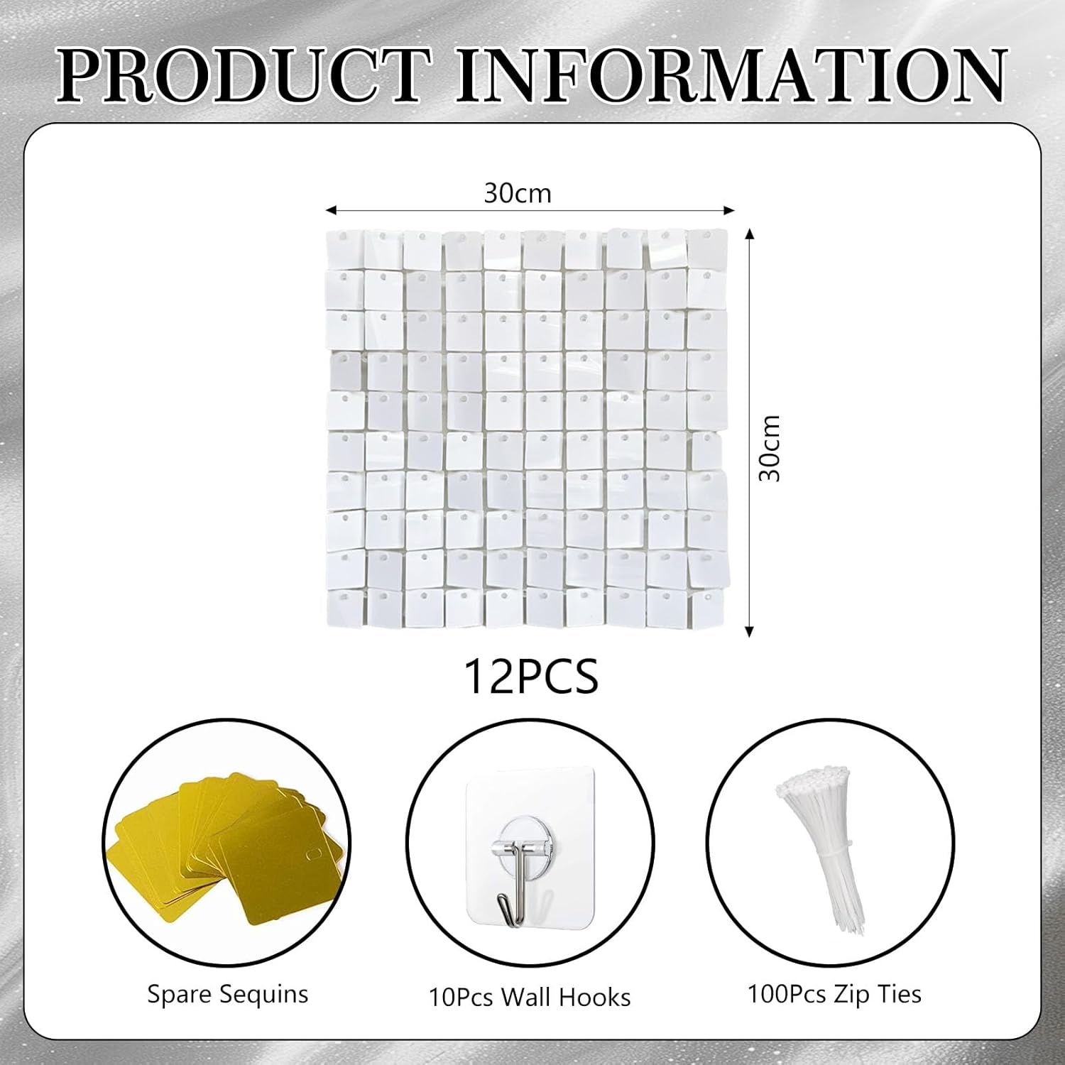 - 【Package Includes】Each box includes 12 white wall panels (12"x 12" each). We provide enough zip ties (100 pcs), a pack of spare sequins, and wall hooks (10 pcs) to support the weight of the wind panel, as well as an installation manual. 12pcs can cover 3x4ft place. More boxs will cover a larger area and have a fuller look.