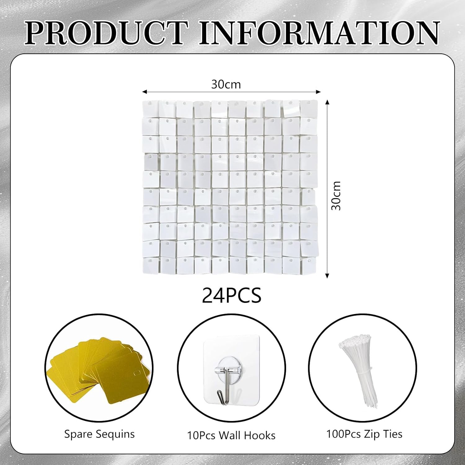 24PCS White Shimmer Wall Backdrop, Square Sequin Photo Backdrops Panel, Glitter Wall Background for Birthdays, Weddings, Christmas, Engagements, Disco Bachelorette Party Decoration (4FTx6FT)