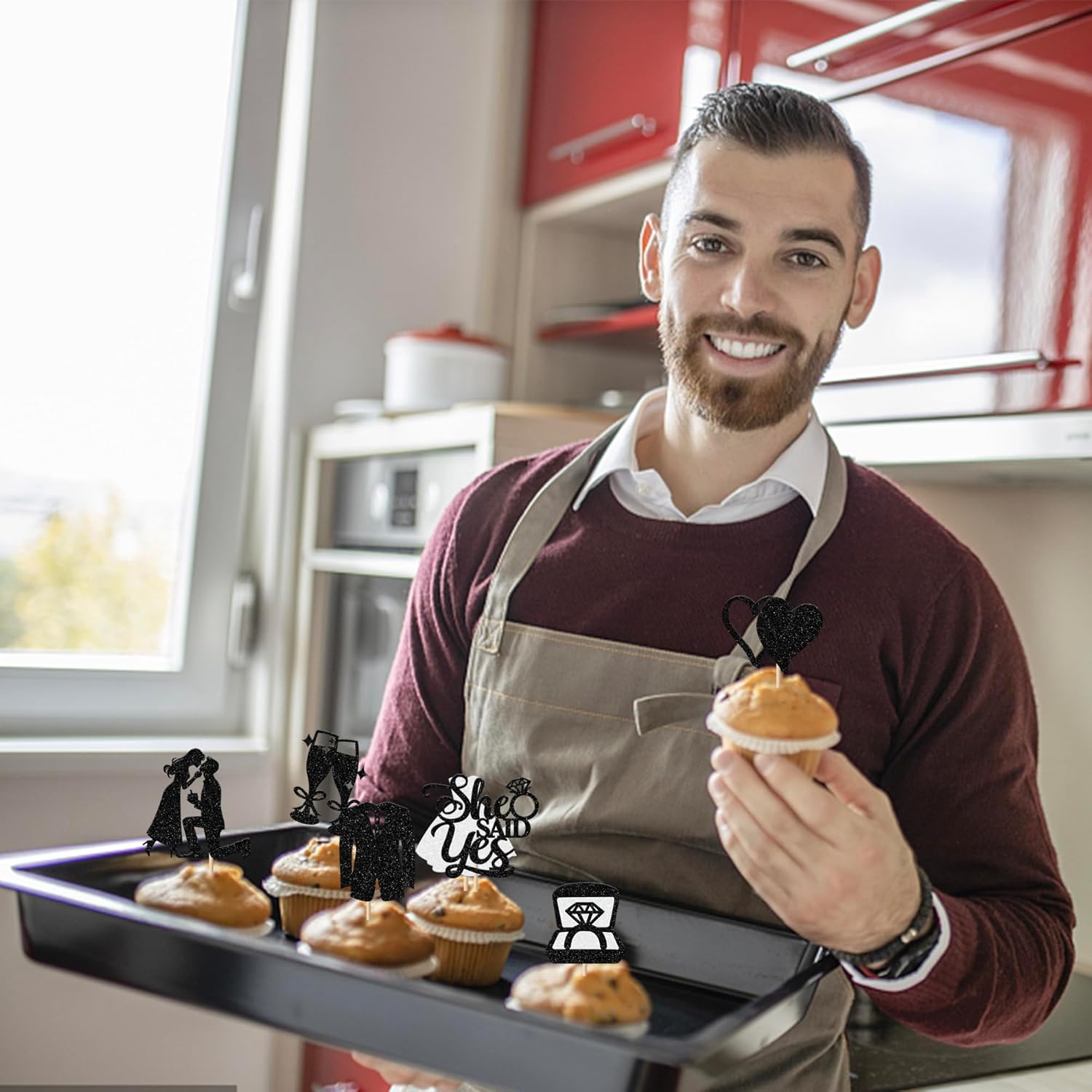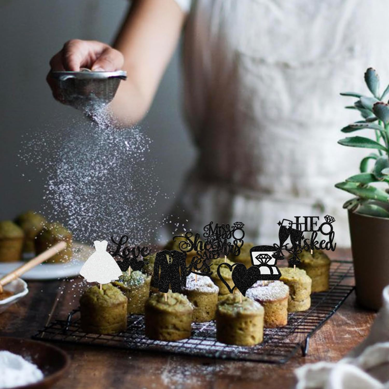 30 Pack Bride to be Cupcake Toppers Glitter Diamond Ring Love I Do Cupcake Picks Miss to Mrs He Asked She Said Yes Bridal Shower Wedding Engagement Bachelorette Cake Decorations Party Black