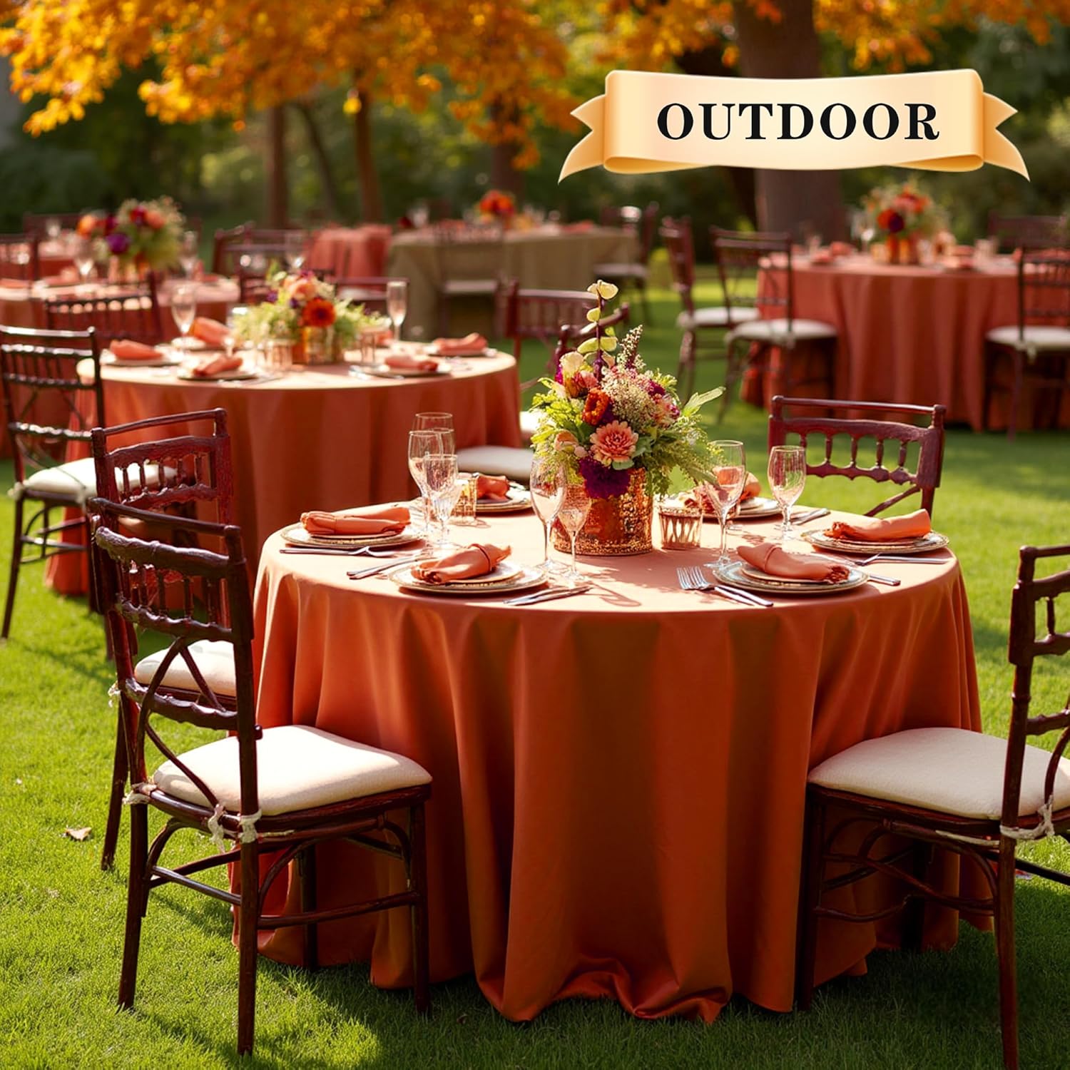 sancua 6 Pack Thanksgiving Round Tablecloth 90 Inch Burnt Orange, Stain and Wrinkle Resistant Fall Table Cloth - Washable Polyester Fabric Table Cover for Dining, Buffet Parties and Camping, Rust