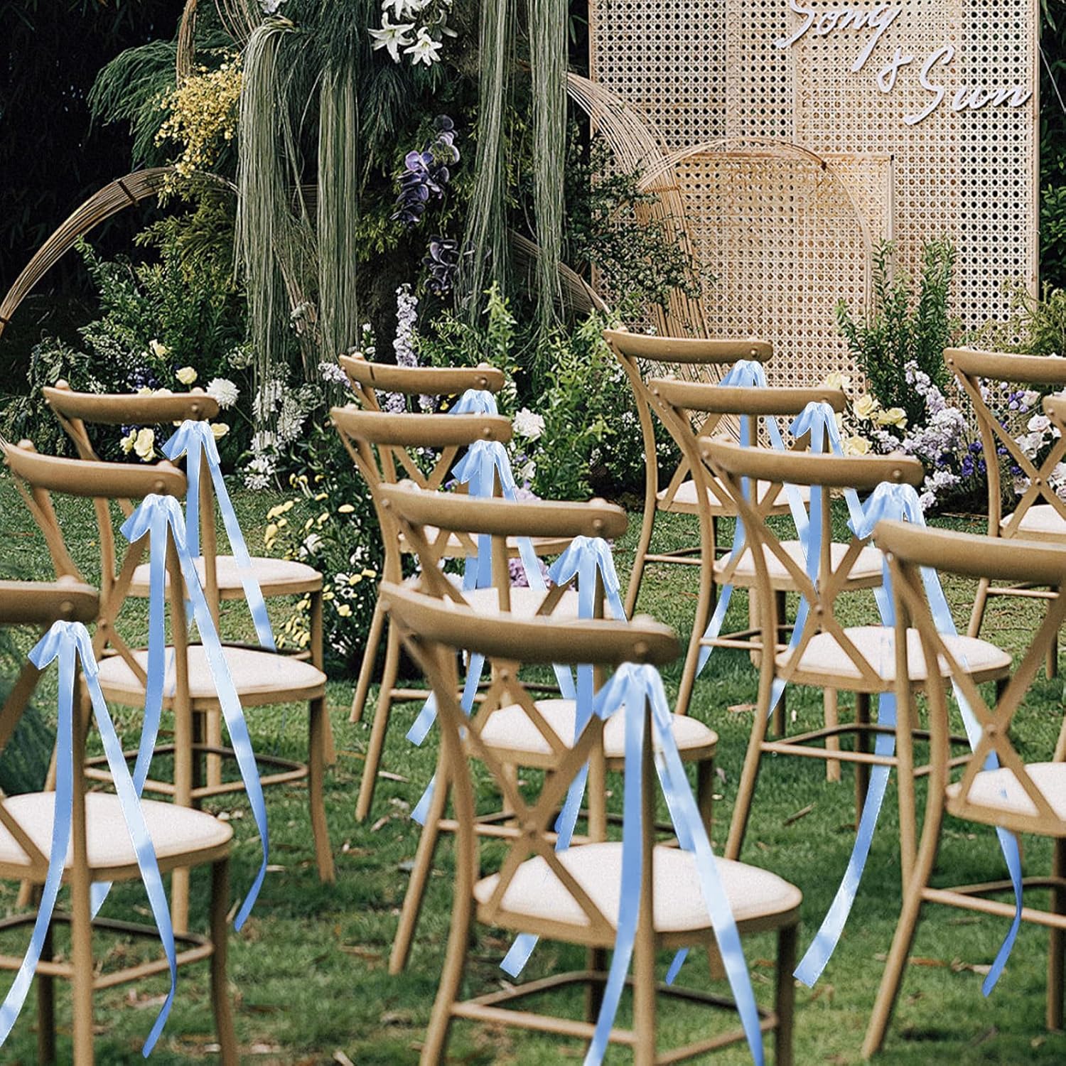 - Lightweight yet luxurious: these delicate chair bows sway gently with every breeze, weaving a dreamy atmosphere into your special day. Made from high-quality ribbon, they combine ethereal beauty with lasting resilience, adding a whisper of romance to weddings or elegant gatherings.