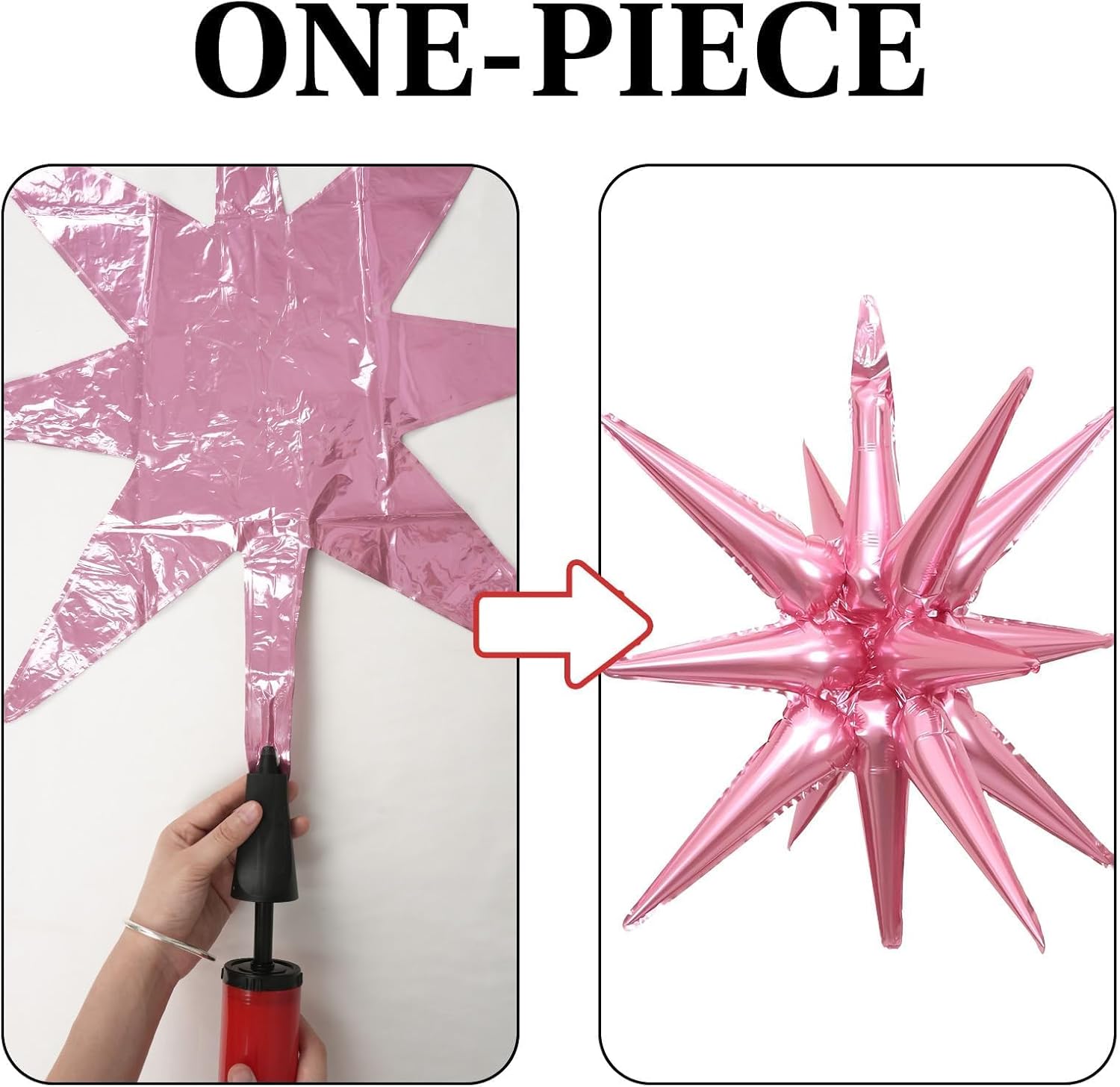 - One-piece Star Balloons: Includes 12pcs One-piece star burst balloons in bold colors: 3pcs × 27in , 3pcs × 22in explosion star balloons and 6pcs × 10in four angle star balloons. Arrives ready to use with 1 straw and 1 roll of ribbon—just inflate and decorate.